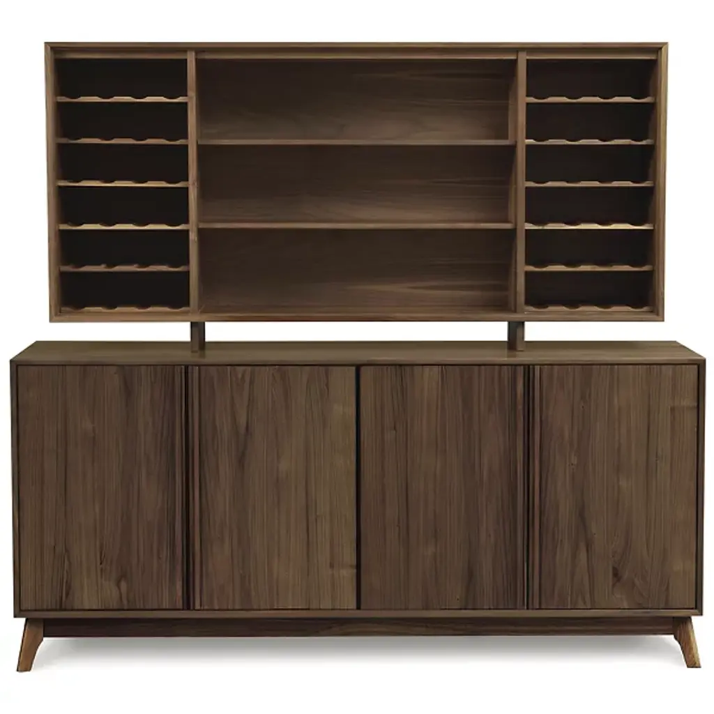 Striking a balance between ultra classy and ultra convenient. Crafted to look beautiful while serving multiple purposes, the Copeland Furniture Catalina 30-Inch Hutch for Buffet offers versatility to go with its good looks. Made from Solid Hardwood and pairing beautifully with compatible dining pieces, this hutch accommodates the needs of a modern dwelling. Shelves can adjust and remove as needed, making space for wine bottles and stemware storage. The exceptional detail of the wood matches the impressively detailed design, giving this American-made unit intriguing depth. With endless functionality and a gorgeous aesthetic, this hutch will turn heads the minute people enter your dining room.
