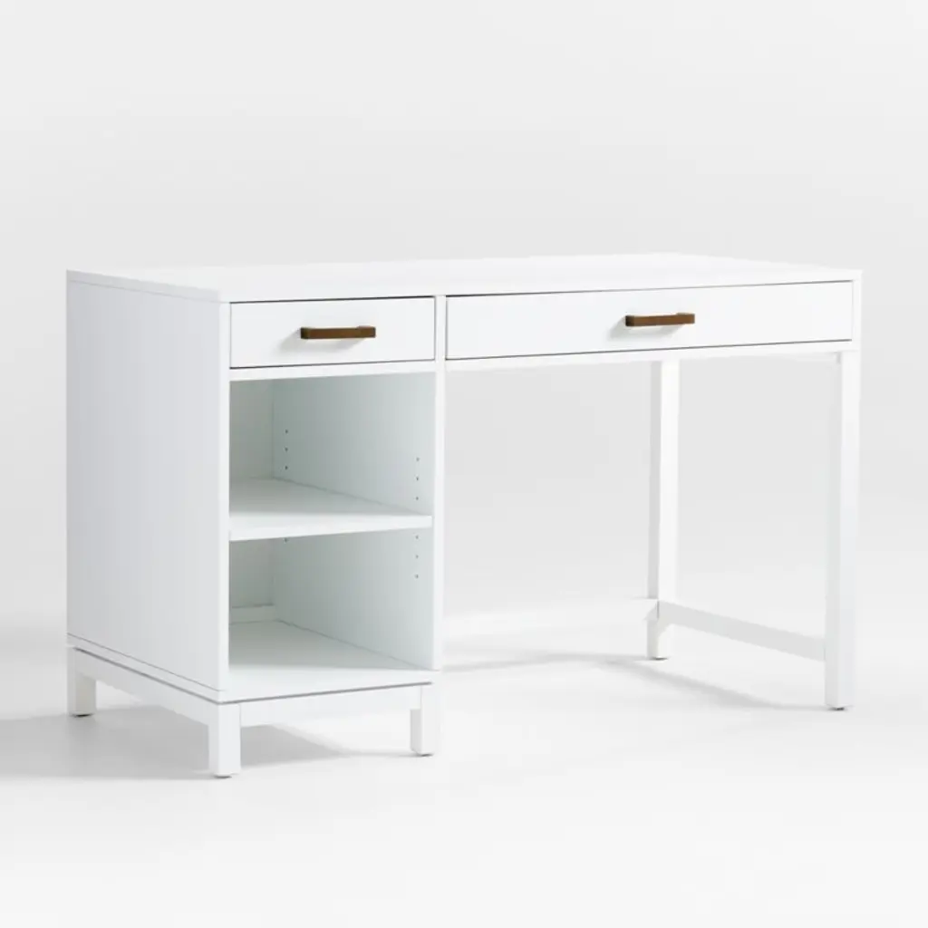 When it comes to furniture that's ready for the long haul, you can be sure our Kids Parke Desk was made to last. That's because this study space essential features clean, simple lines, giving it a timeless look that can coordinate with nearly any style. It features two roomy drawers, including one with removable dividers for organization. Sturdy construction means it'll carry its weight for years to come, while drawer pulls with an antique brass finish provide a sophisticated accent.Pick the perfect bedding for your little one's room, and discover why all of our kid and crib sheets are 100% organic cotton.GREENGUARD Gold Certification