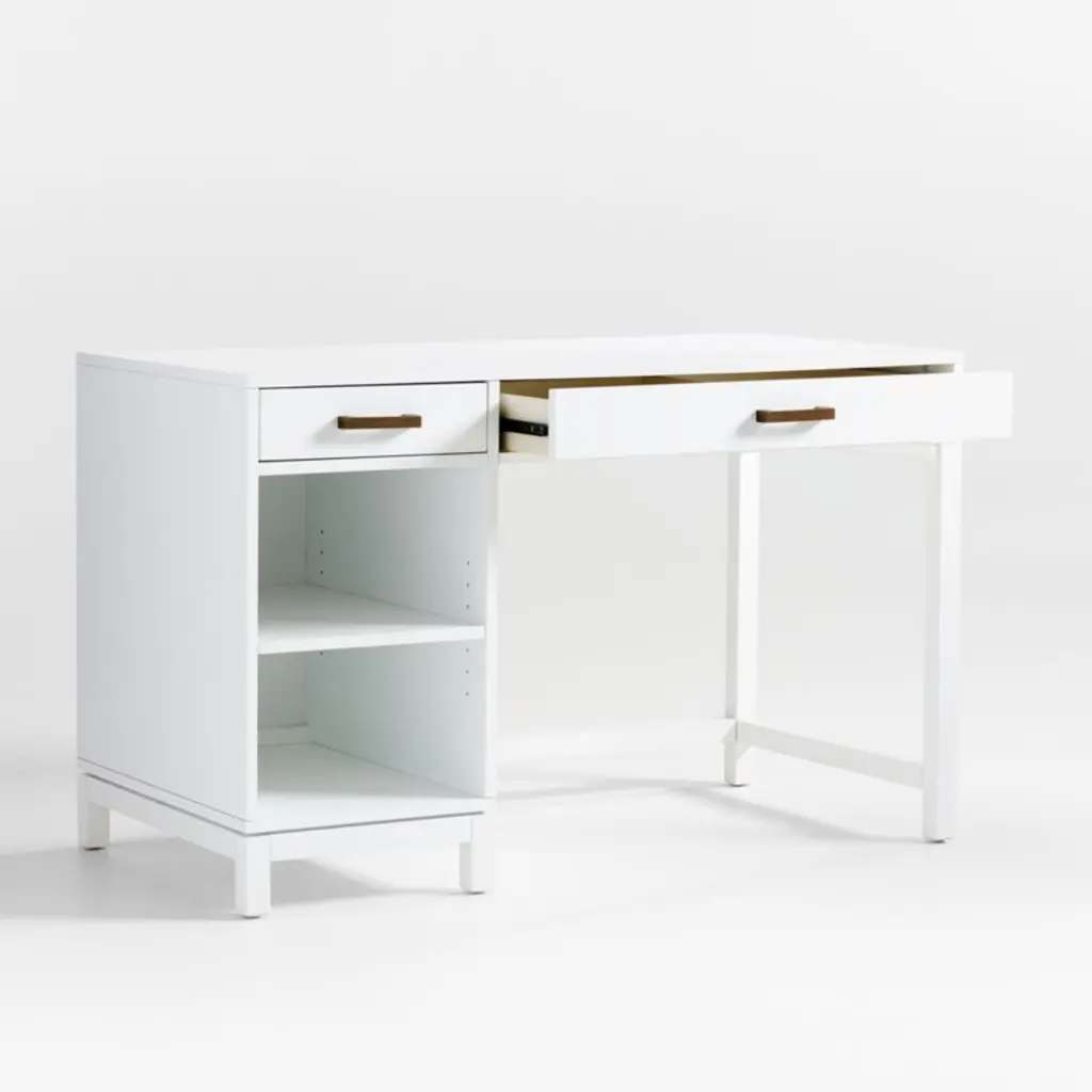 When it comes to furniture that's ready for the long haul, you can be sure our Kids Parke Desk was made to last. That's because this study space essential features clean, simple lines, giving it a timeless look that can coordinate with nearly any style. It features two roomy drawers, including one with removable dividers for organization. Sturdy construction means it'll carry its weight for years to come, while drawer pulls with an antique brass finish provide a sophisticated accent.Pick the perfect bedding for your little one's room, and discover why all of our kid and crib sheets are 100% organic cotton.GREENGUARD Gold Certification