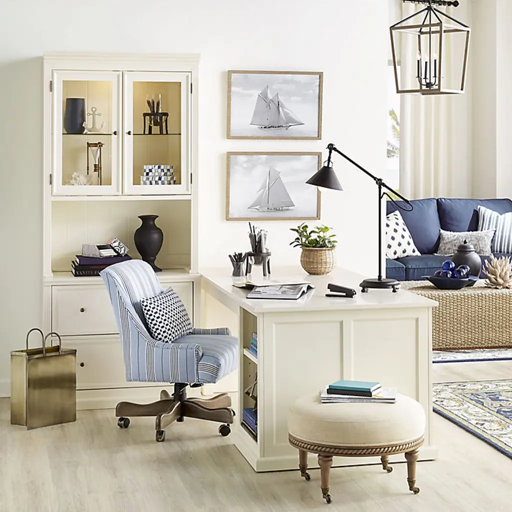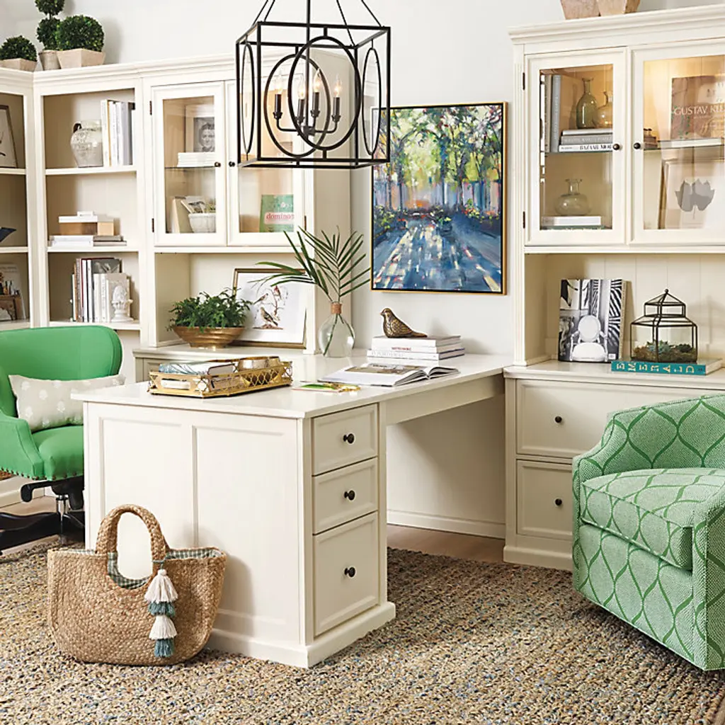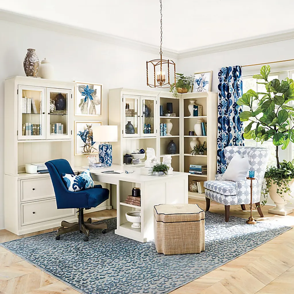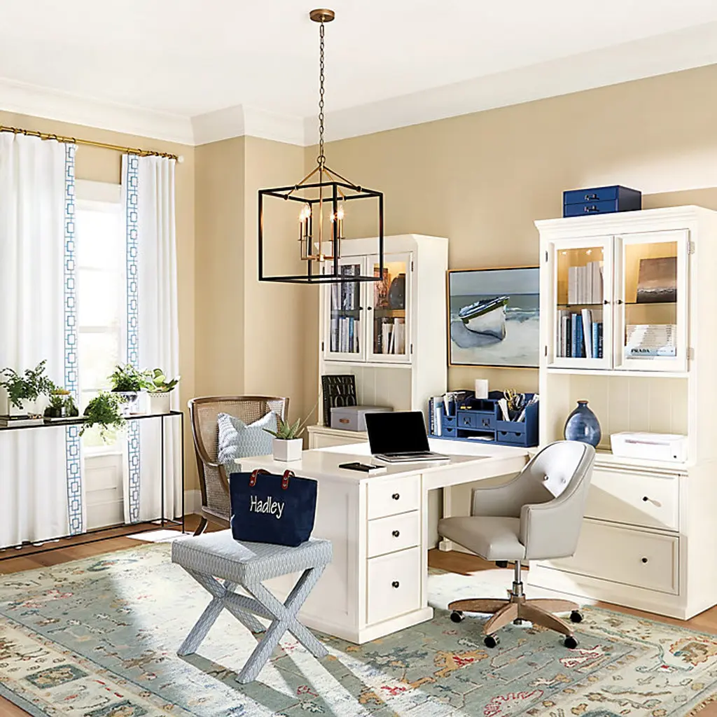 Our modular Tuscan office furniture collection blends modern versatility with the classic looks of a custom built-in. Each piece works with every other, so you can design a home office, media center or storage solution to fit your space and needs perfectly. The double lateral File Console holds letter or legal files, and pairs with the Tuscan File Hutch to create vertical display area and file storage in a space-saving footprint. File cabinet multi-tasks as a printer stand. Hutch's beveled glass doors and a built-in light above the adjustable glass shelf showcase the contents. Light adjusts to three levels with a simple touch. Stand multiple Hutches side-by-side to make a custom-length hutch/credenza with as much file storage as you need. Flush sides make it seamless and easy. Tuscan File Console and Hutch features: Plinth base & fluted corner railsFile Console features full extension metal drawer glidesHutch has paneled interior & cord managementCrafted with solid wood frames & fine veneersAntique brass finish hardwareIncludes 1 halogen light bulbSwatches availableLevelers for perfect alignmentDownload free Design Guide under "More Details" tabSome assembly required (hutch attaches on back with metal plates)