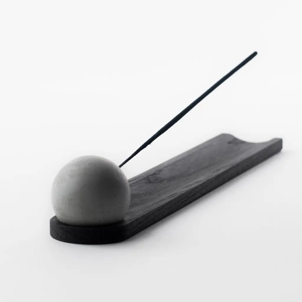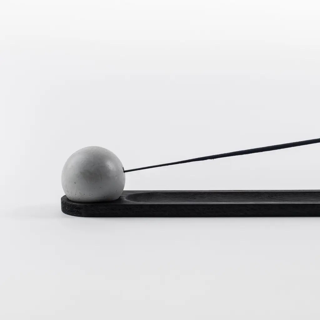 Relax after a long day or enhance your home with a beautiful object? How about both? This modern incense burner draws inspiration from simple geometric volumes and provides a convenient solution to burn incense. Made by Komolab, the incense burner complements its refined design with premium materials. The concrete sphere fits inside the wooden base and features an opening for incense sticks. Ashes fall on the slightly curved base to make cleaning as easy as possible. Available in a range of finishes, this minimalist incense burner will help you clear your mind and your home’s decor at the same time. Discover the other designs from the Komolab collection in our shop.