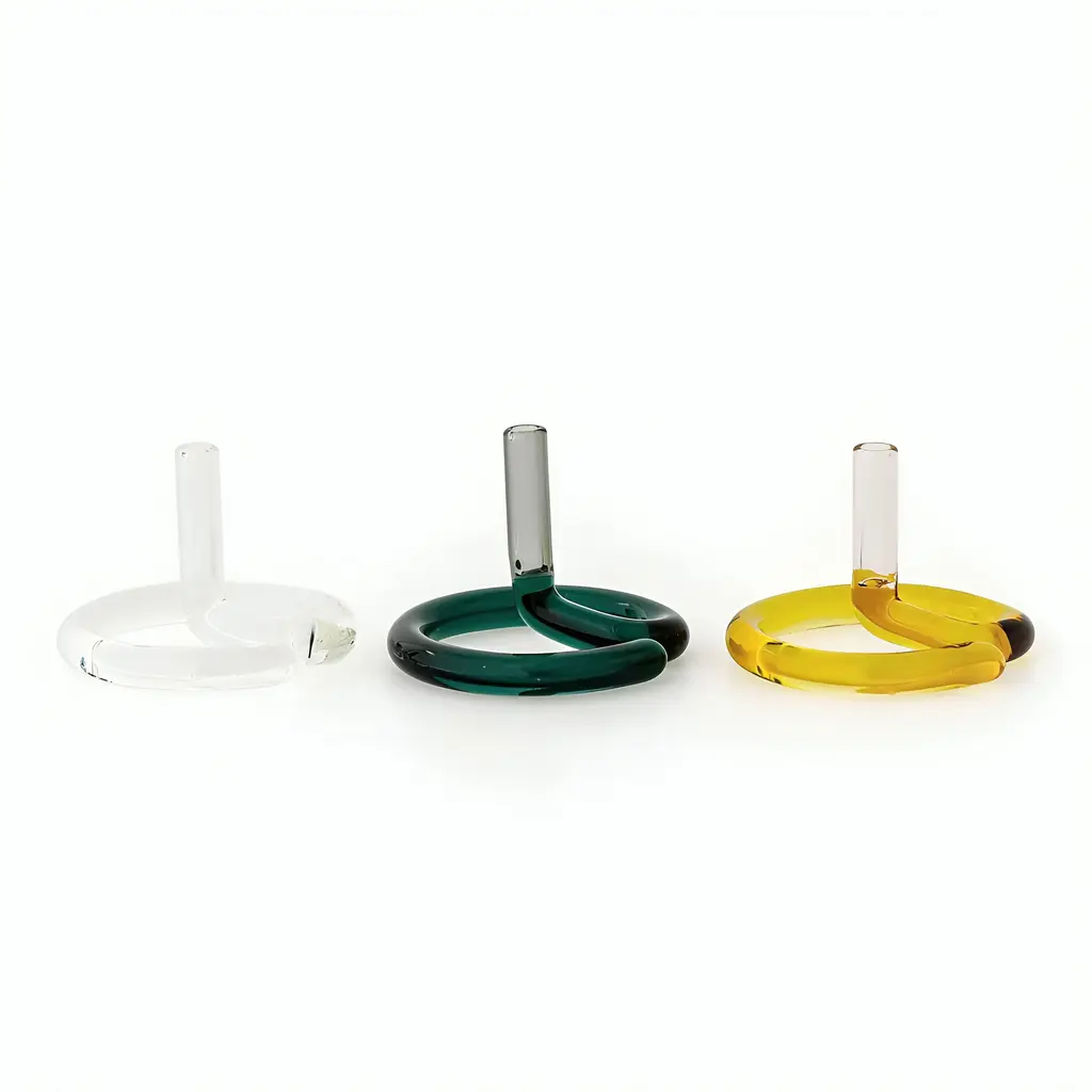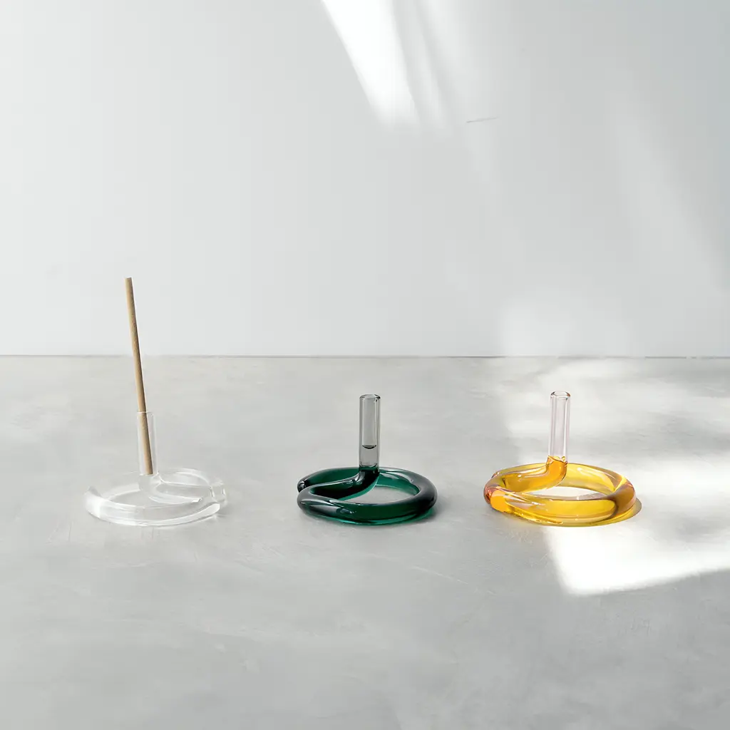 From yoga and meditation to moments of relaxation and tranquility, a thoughtfully designed glass incense holder can enhance these experiences and your home décor at the same time. The Two Tone Incense Holder is practical and easy to use while also functioning as a design object. Reminiscent of a cobra that raises its head in front of a snake charmer, this glass incense burner features a coiled base and a vertical holder. Incense sticks of various sizes can be placed in the holder and burned safely, as this product is crafted from heat-resistant glass. The Two Tone Glass Incense Holder also comes with a brush for easy cleaning. Choose your favorite color from the available options to complement your home décor. For extra safety, we recommend always using a saucer or tray to catch the falling ash. Please keep in mind that this is a glass product and may feature minor bubbles, spots or fine scratches, as well as slight differences in color, size, and thickness.
