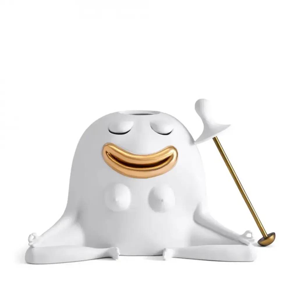 L'objet + Haas Meditator Incense Burner White + Gold 10.5 X 7.25 X 8" - 27 X 18 X 20cm