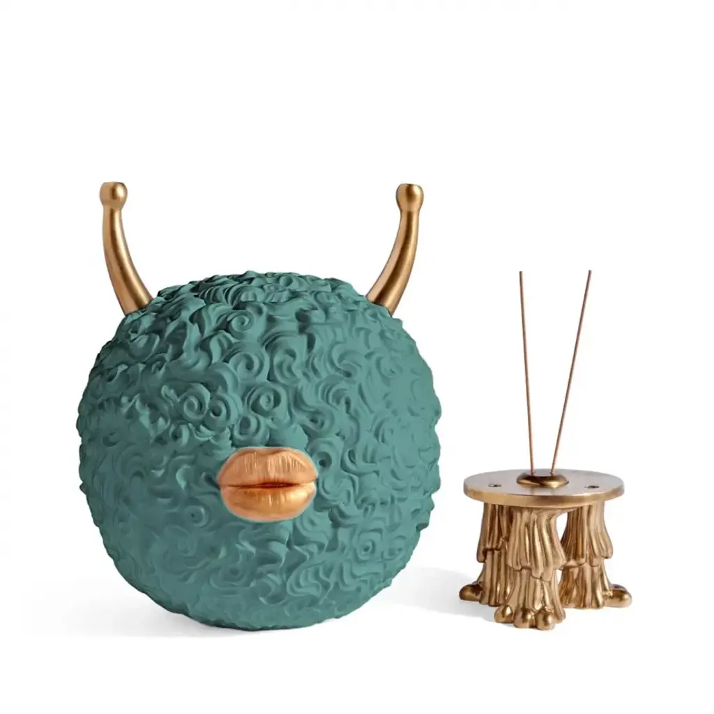 The L’OBJET Haas Brothers collection is a meeting of imaginative minds and skilled hands. Inspired by the otherworldly landscape of Joshua Tree, Los Angeles-based artists Simon and Nikolai Haas worked in close collaboration with the master craftsmen at L’OBJET to create a collection that spans tableware, home décor, textiles and fragrance. Together, they have brought to life a family of characterful creatures with the highest quality of finish and function. These are objects to be cherished. In using them, everyday moments become memorable; the ordinary becomes extraordinary.The monster incense burner produces a delightful experience- light incense and conceal under the monster’s porcelain torso, as the incense smolders it’s fragrant smoke will be released through the creature’s brass horns. The deeply sculpted hair on this vessel pushes porcelain to its limits creating a texture that is both sophisticated and wild. Prior to founding L’Objet in 2004, Israeli-born Elad Yifrach was a successful designer in Beverly Hills. He was creating beautiful interiors, but he was frustrated by the limited options available in home accessories, so he set out to create something better. L’Objet’s collections are diverse, but they are almost always inspired by nature and architecture. Many of his exquisite serving pieces rest in a base of hand-crafted gold foliage, other pieces feature intricate design and beadwork, and some of the most striking objects actually look like miniature buildings. And despite the lux feel, much of the line is practical with just a touch of whimsy.
