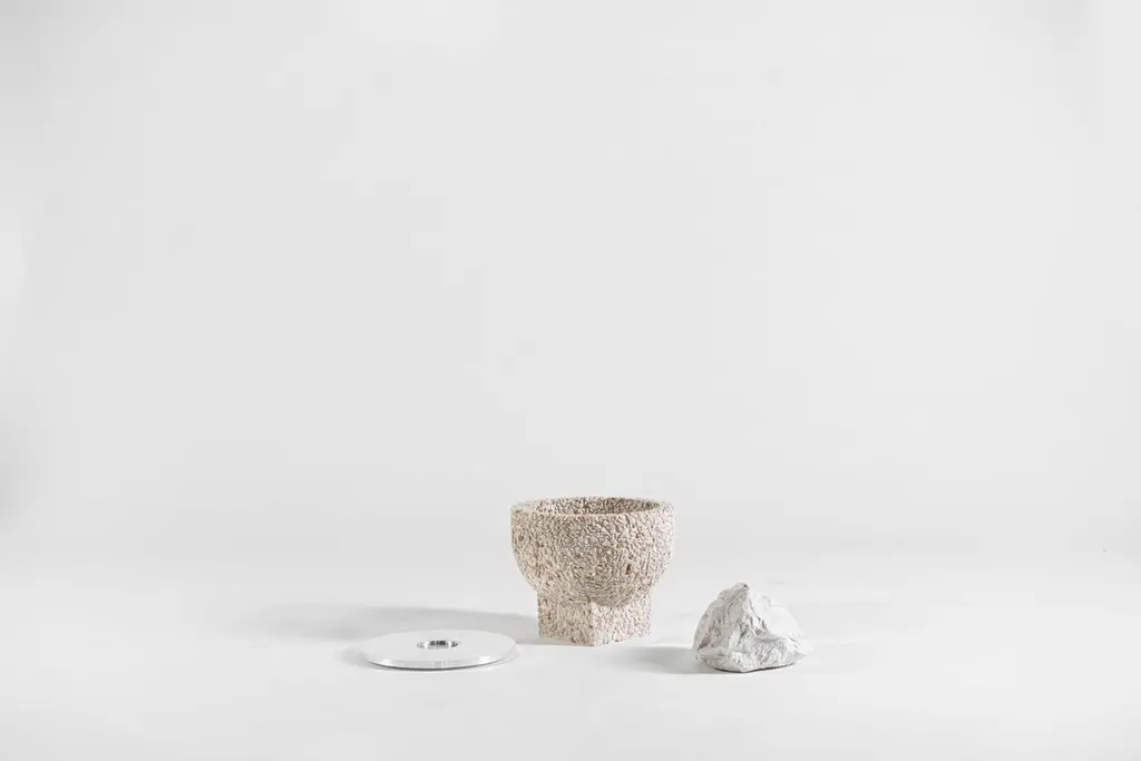 Smoker scent burner by VaustOpen EditionDimensions: D 26 x H 22.5 cmMaterials: exposed concrete, aluminium, carved artificial stoneAlso Available: Custom material selection can be offered upon request and after approval by designer.Exposed concrete and aluminium incense burner. Inside the stone is a hollow space with a tiny chimney. Incense cones can be lit and covered up the stone. The light smoke leaks from the little hole precisely drilled into the stone. Vaust is a Berlin-based, award winning design studio working in the intersection of interior design, object design and creative direction.Our spatial design procedure covers various fields from residential and retail to hospitality and corporate spaces. We dedicate ourselves to unconventional thinking, distinctive aesthetics, artistic design, efficient planning and precise realization.Our object design procedure describes our creative take on one-of-a-kind items, studio own collections + projects as well as commissioned work. A new sphere emerges and is blurring the lines between furniture and art. We understand that sphere as our working basis.When working in the field of creative direction we translate our artistic and distinctive approach, enrich it with our strategic and corporate experience and apply this to brands and products as well as communication all the way from print to digital.