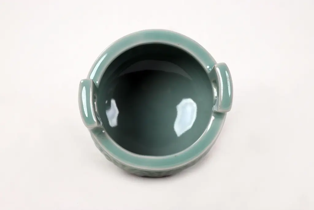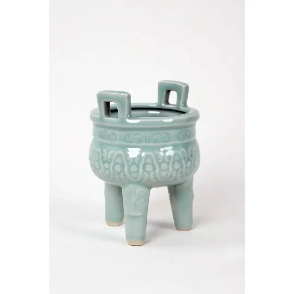Vintage Celadon Tripod Cauldron With Two Facing Handles, Incense Burner