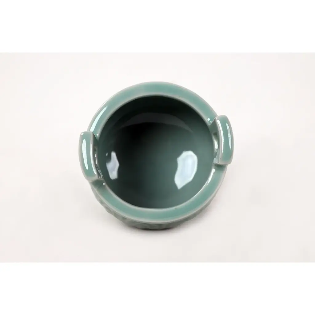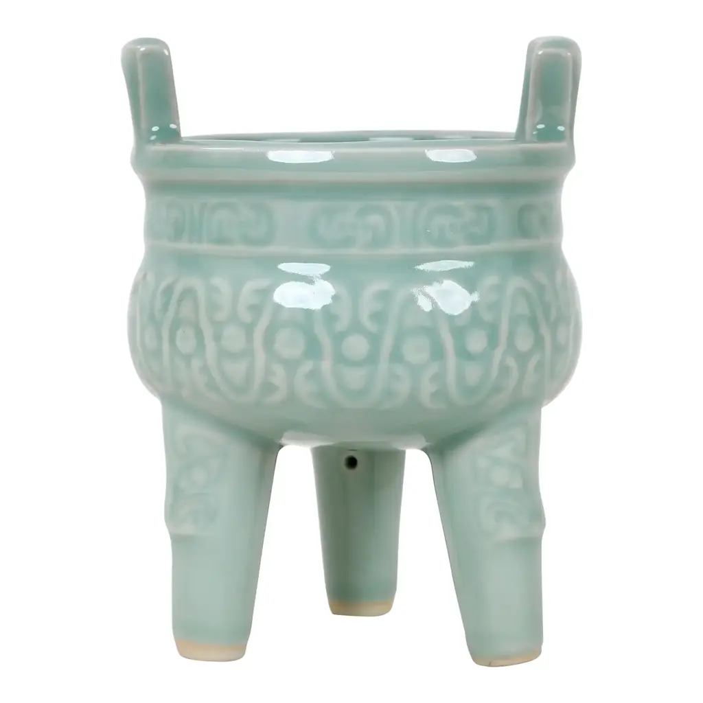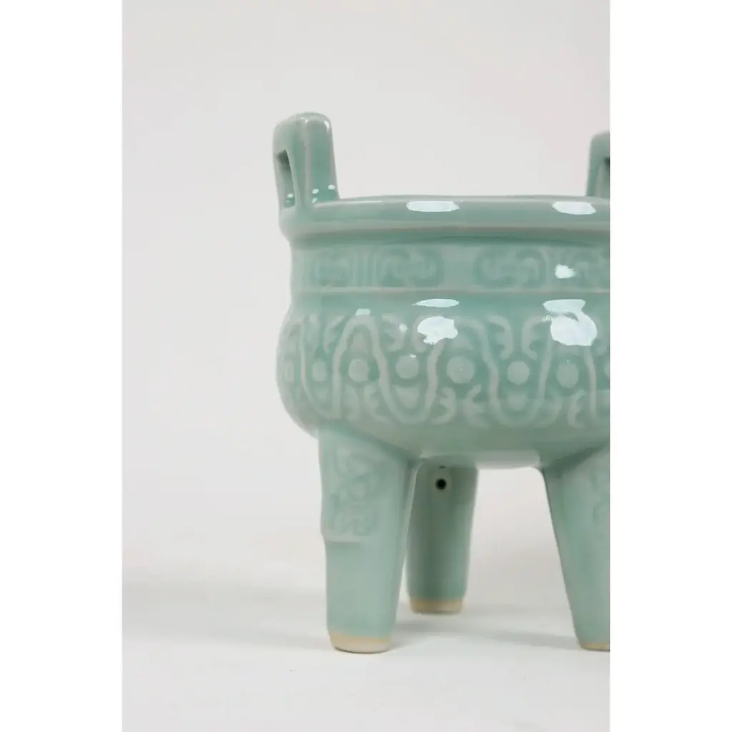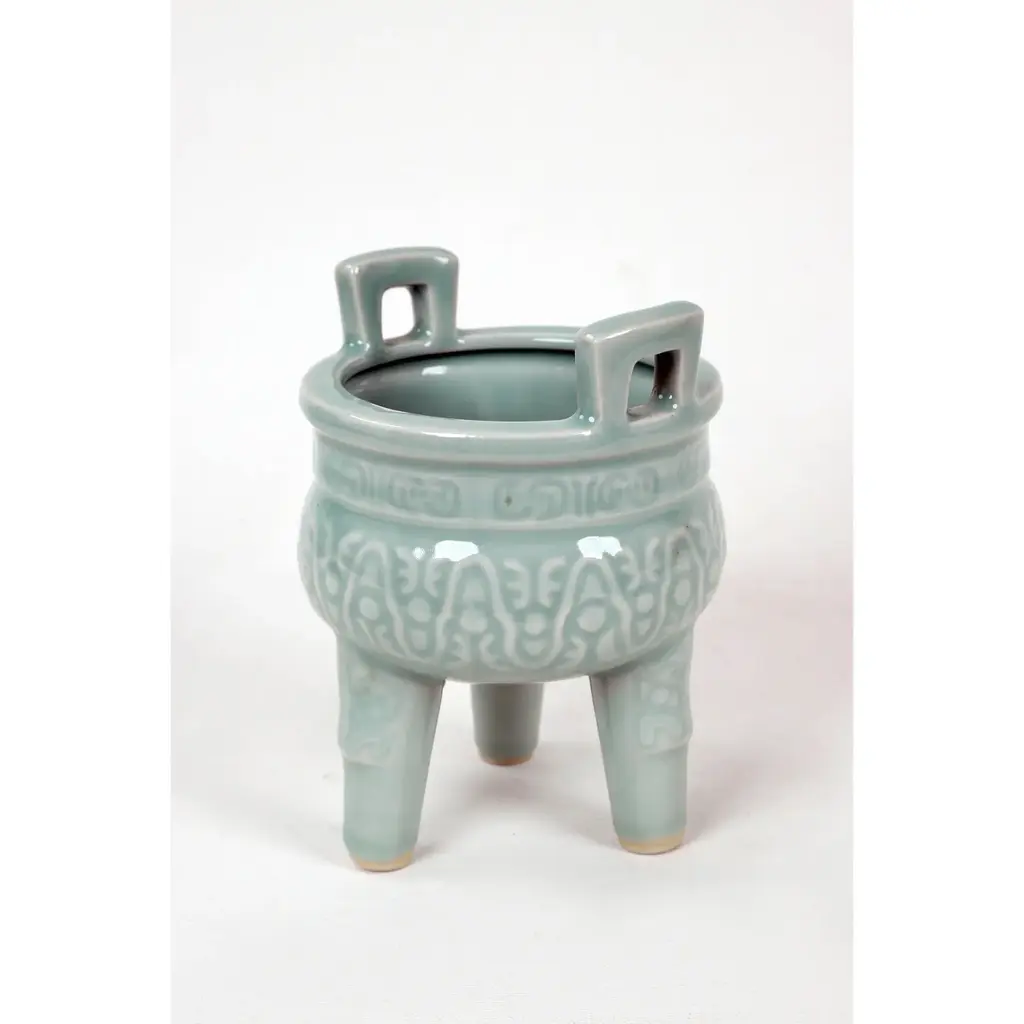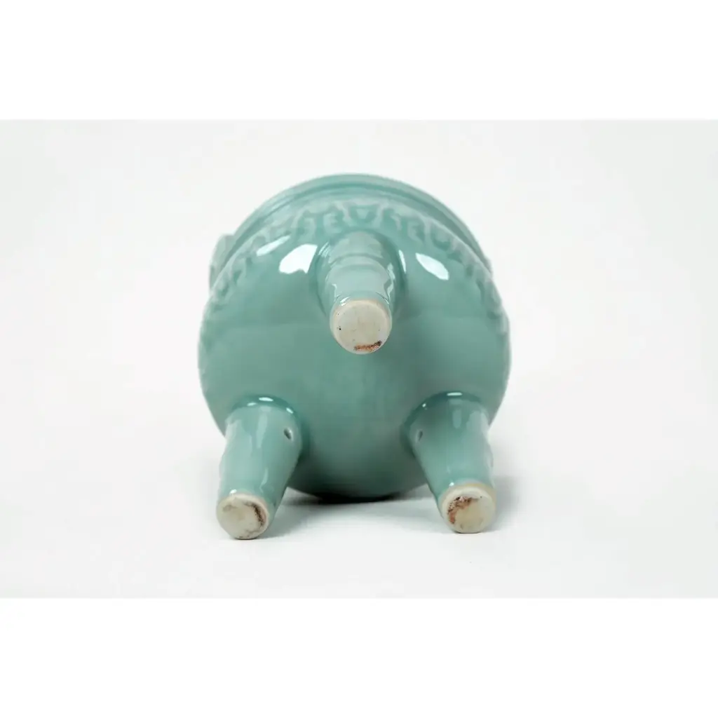 Vintage Celadon Tripod Cauldron With Two Facing Handles, Incense Burner