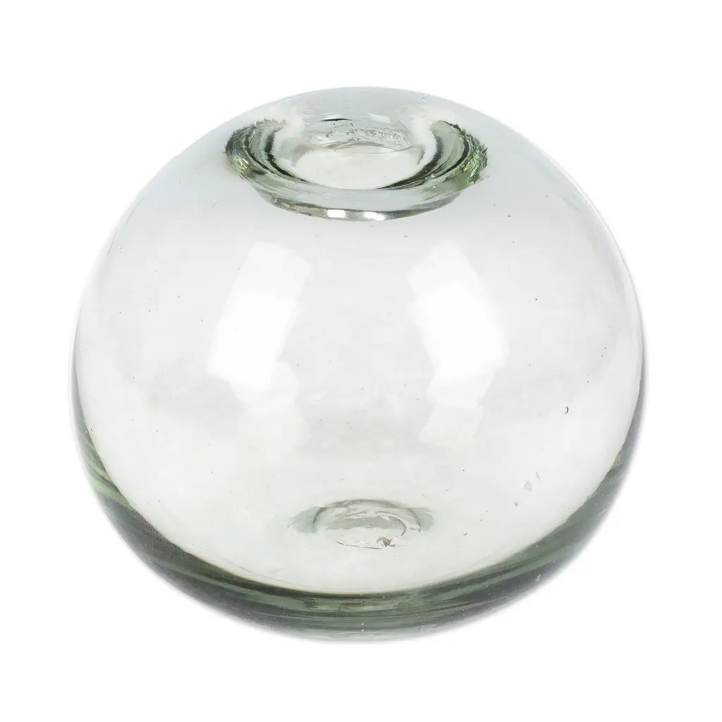 Decorate your interiors with fragrant essences and the mystic look of this recycled glass incense diffuser by Mexico's Lourdes Martinez. Handblown techniques allow the artisan to create the piece in an avant-garde sphere shape, whose crystal-clear look allows for a stunning illusion.