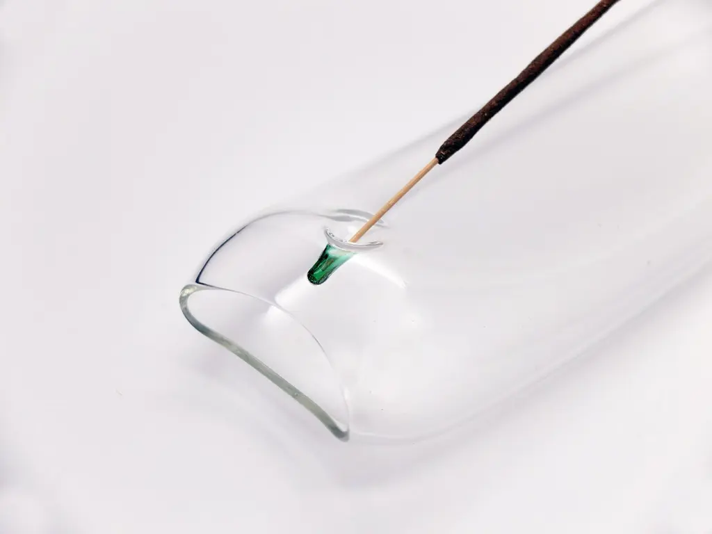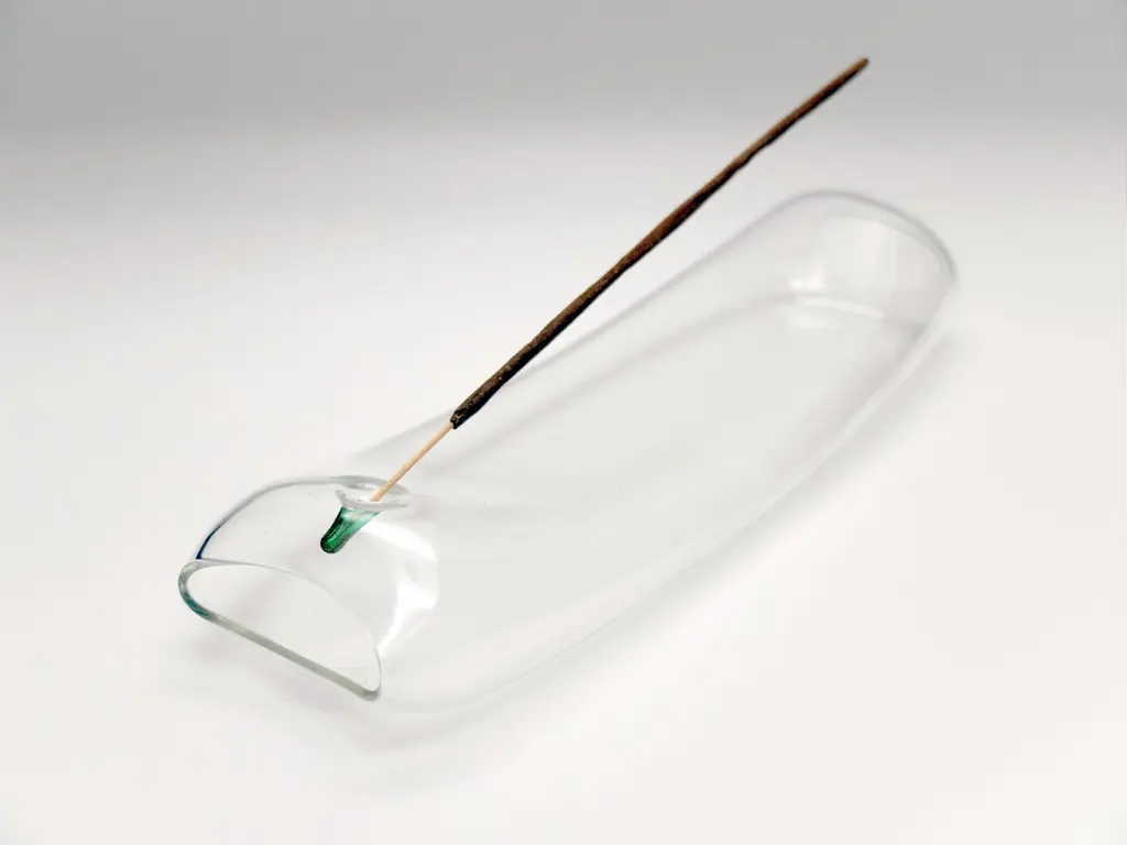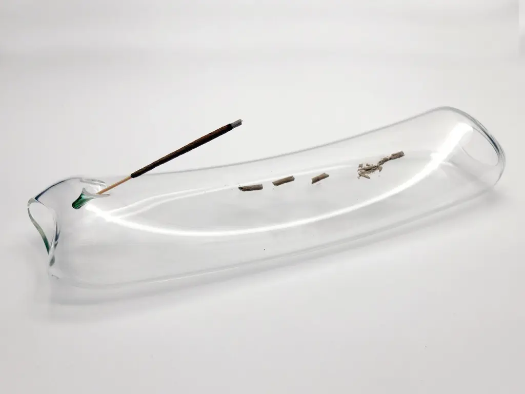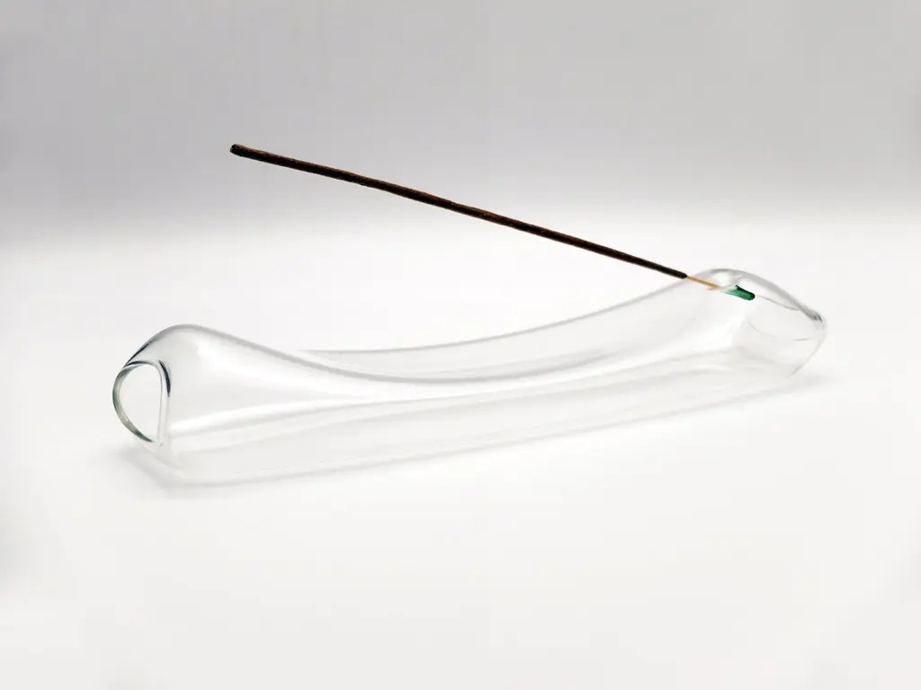The Smoke incense holder is made of blown borosilicate glass. The design of its shape, soft and light, seems to be defined by the swirls of smoke that rise slowly. The internal void that characterizes it was designed to contain incense sticks. The extreme transparency magically makes the fragrant smoke of incense the protagonist, hence the name itself.Minimal variations in shape, size and color are to be considered an exclusive feature, a sign of quality and non-serial production.