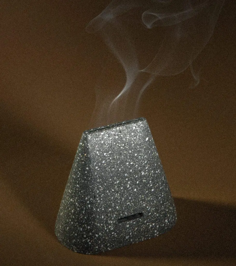 Set of 2 Humo Lineal incense diffuser by Algo StudioBy Diego GarzaDesigned by Diego GarzaDimensions: D 7.5 x W 12 x H 11.5 cmMaterials: Casted concrete terrazzo.Colors: black, dark green.Incense cone burner and diffuser, its geometry forces the smoke to exit through a narrow slit, shaping it into subtle and suggestive forms.Carefully crafted at our workshop in Monterrey, MxAlgo Studio, based in Monterrey, Mexico, was founded in 2019 by Diego Garza, architect with a MFA in furniture design by RISD in 2015.Our goal is to be a constant creation laboratory on product, furniture and lighting design. We have our own workshop where we produce some of our pieces. Our creative method is based on working firsthand with materials and techniques in order to create new results.We seek to create elementary objects with a soul. Objects with a warm, grounded vibe, expressing something interesting to the senses.With the intention to keep things fresh and be able to constantly regenerate our proposals most of our lots are all small and limited.