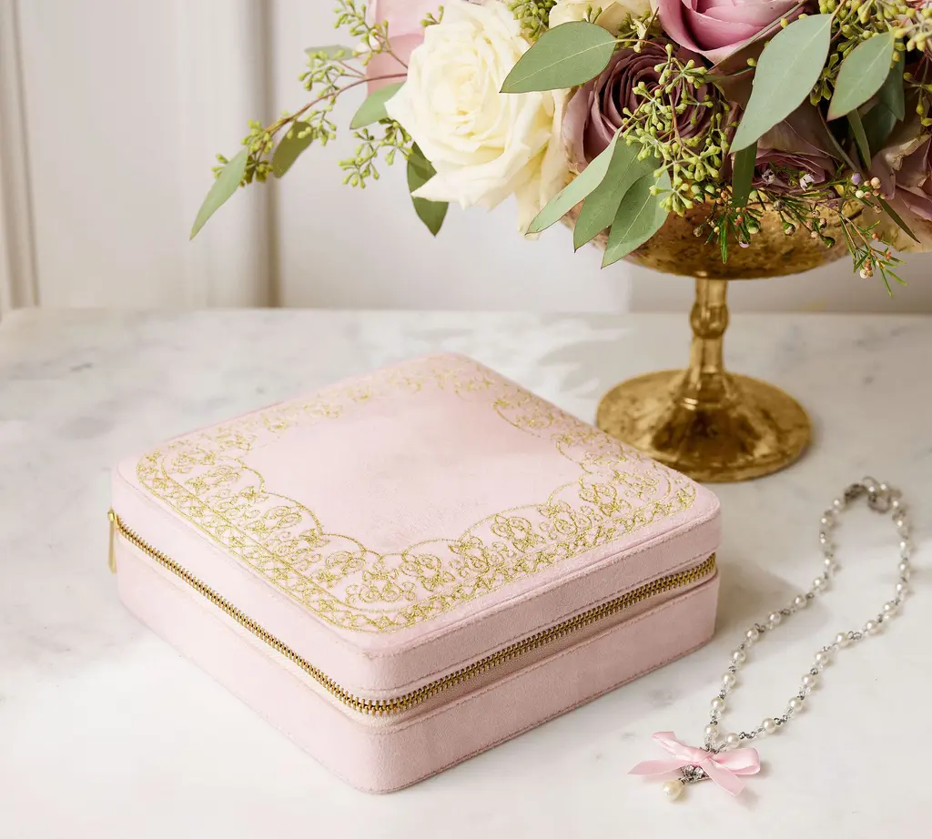 Our compact, easy-to-pack jewelry case will keep you organized at home or on the go. With space to organize rings, earrings, and necklaces, this zipper case is as pretty as it is practical.