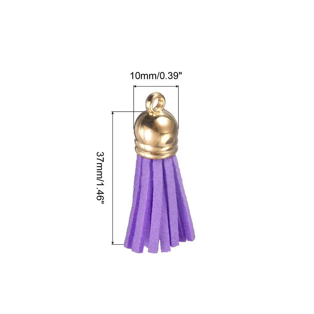 [Leather Tassels] - Total Size: 37mm x 10mm/1.46" x 0.39"(L*Dia); Thickness: 2.3mm/0.091"; Package Included: 120Pcs x Leather Tassels.[Material] - Made of suede leather material that is durable and not easy to fade. It has excellent properties such as lightweight, wear resistance, non-deformation, high strength, and long-term use. The tassel cap is made of plastic material, durable and not easy to deform.[Feature] - The tassel pendants with a leather texture that is comfortable to touch and handle. The leather tassel is not easily bent and not easy to fall off, so that the tassel looks straight and perfect.[Easy to Use] - Designed with a loop on the cap to help you easily attach with a string, keyring, wire without wasting time tidying up or worrying about splitting the thread as it goes through the body.[Application] - Great for keychain tassels, earrings, bag accessories, cellphone straps, zipper pulls, curtain pendants, clothing design, jewelry making and handmade diy accessories crafting.Description:Made of suede leather material that is durable and not easy to fade. It has excellent properties such as lightweight, wear resistance, non-deformation, high strength, and long-term use. The tassel cap is made of plastic material, durable and not easy to deform.The tassel pendants with a leather texture that is comfortable to touch and handle. The leather tassel is not easily bent and not easy to fall off, so that the tassel looks straight and perfect.Designed with a loop on the cap to help you easily attach with a string, keyring, wire without wasting time tidying up or worrying about splitting the thread as it goes through the body.Great for keychain tassels, earrings, bag accessories, cellphone straps, zipper pulls, curtain pendants, clothing design, jewelry making and handmade diy accessories crafting. Product Specifications:Material: Suede LeatherColor: RedTotal Size: 37mm x 10mm/1.46" x 0.39"(L*Dia)Thickness: 2.3mm/0.091"Package Included:120Pcs x Leather Tassels