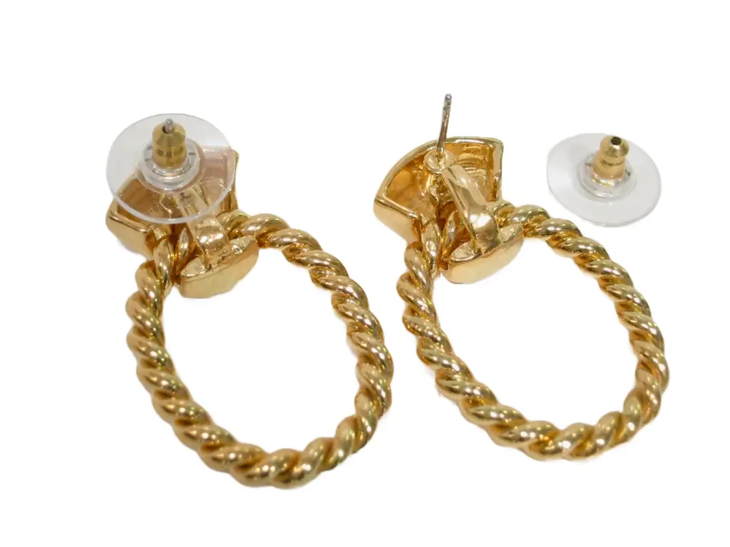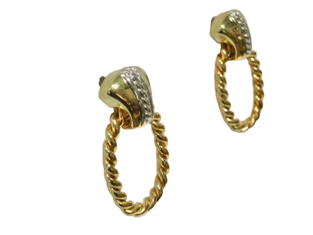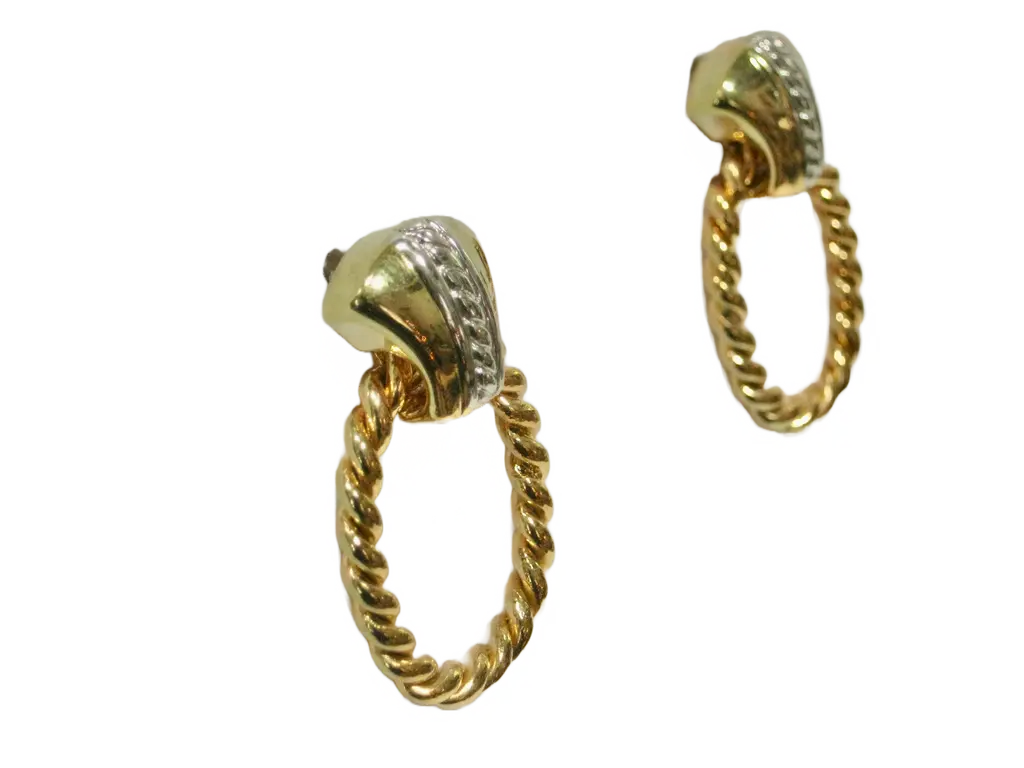 1980s silver & gold crystal carved hoop/dangle pierced -post earrings. From my private collection, never worn.