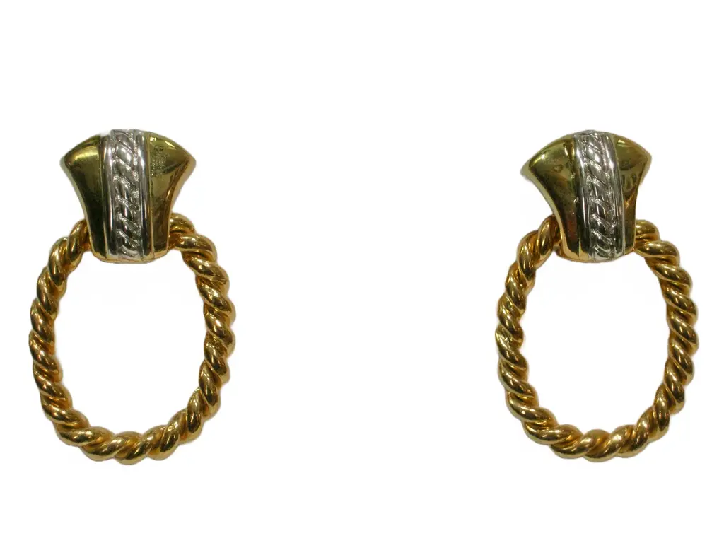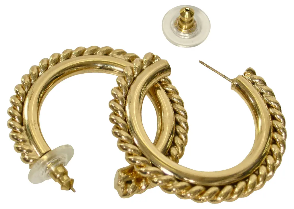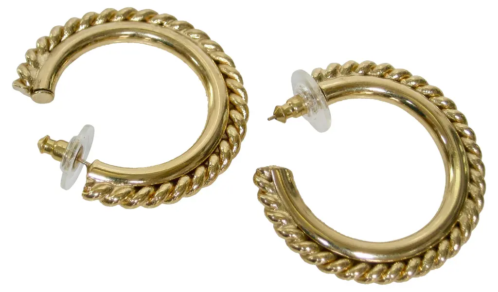 1980s gold-plated cable hoop earrings. Post backs. Attributed to Givenchy. From a private collection, never worn.