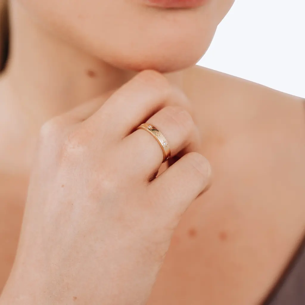 Alternating etched and diamond set starburst adorn a gold eternity band. This whimsical ring adds a celestial touch to your stack.Total diamond carat weight 0.42. Ring measures approximately 3mm wide. Stones measure 1.5-2mm. From its inception, Anzie Jewelry has been a celebration of life and color. Named after its founder, Anzie Stein, this collection of fine jewelry is best known for its signature pieces using precious gemstones that bring luxury to your everyday wear.