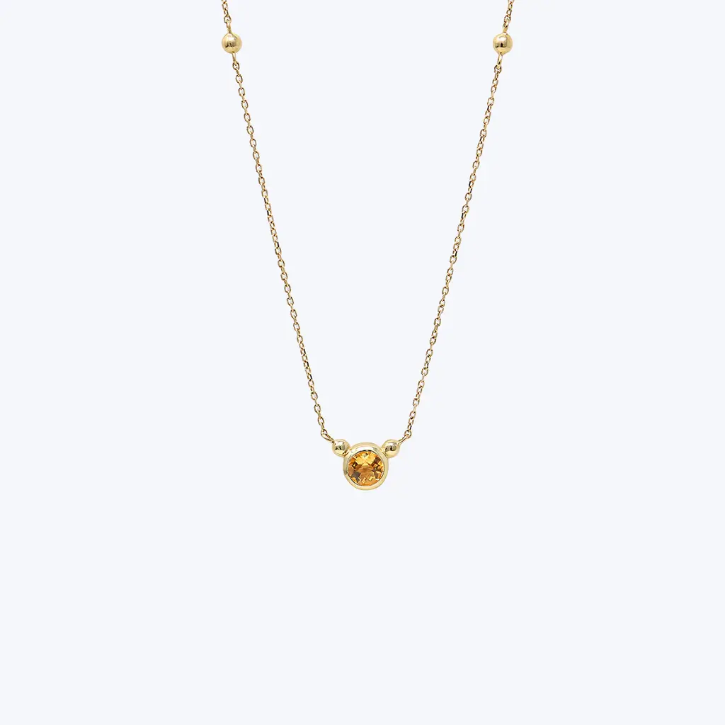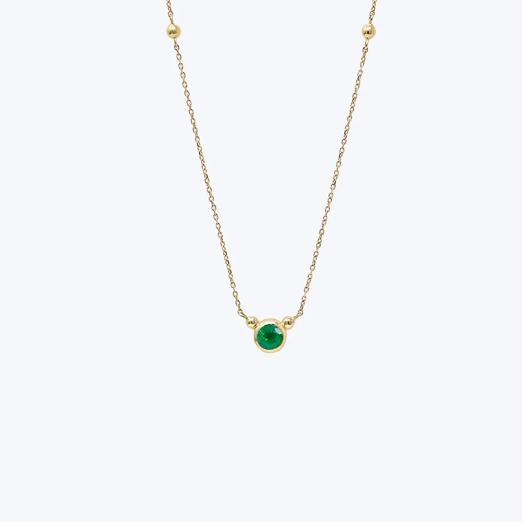 A birthstone is bezel set and suspended from a sparkling gold diamond cut chain with Dew Drop details. Stone measures 5mm in diameter and has 0.42 TCW. 16" Necklace fastens with a lobster clasp and has two 1" adjustments to make it 14" or 15”. From its inception, Anzie Jewelry has been a celebration of life and color. Named after its founder, Anzie Stein, this collection of fine jewelry is best known for its signature pieces using precious gemstones that bring luxury to your everyday wear.