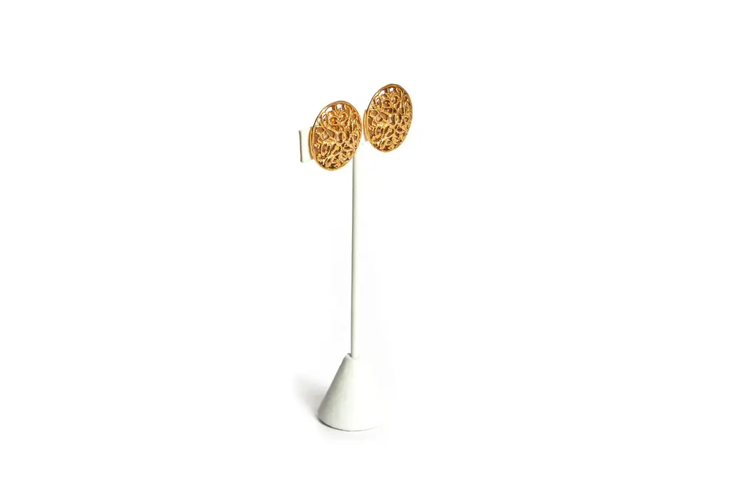 Chanel gold tone perforated logo round clip earrings.Collection 26 by Victoire de Castellaine. Come with original pouch.