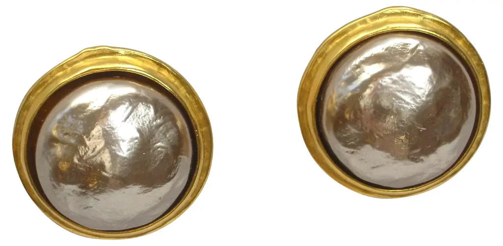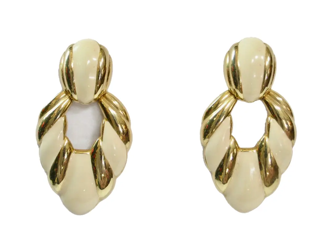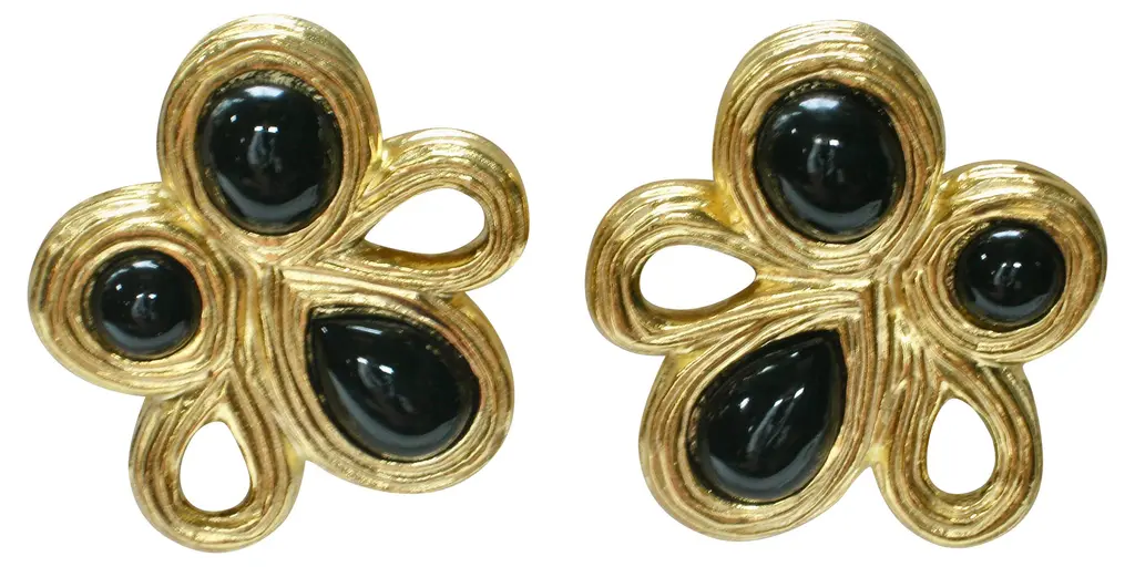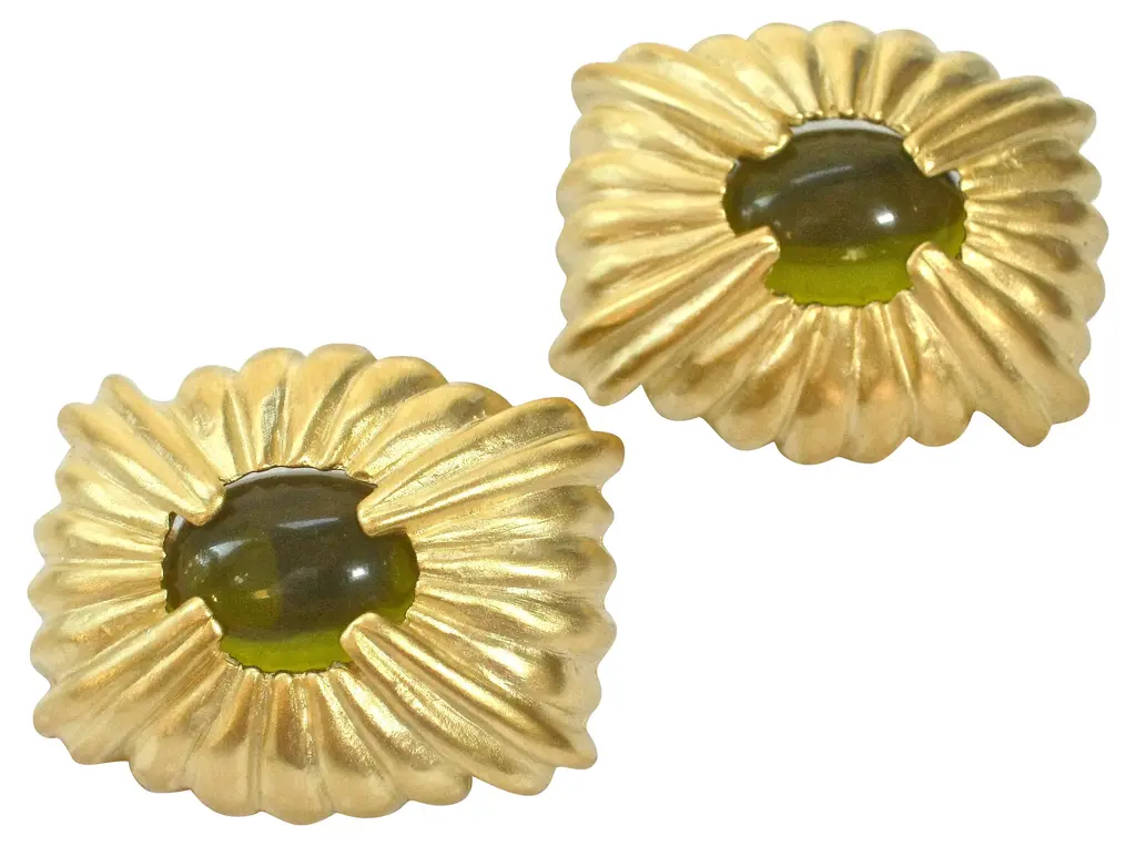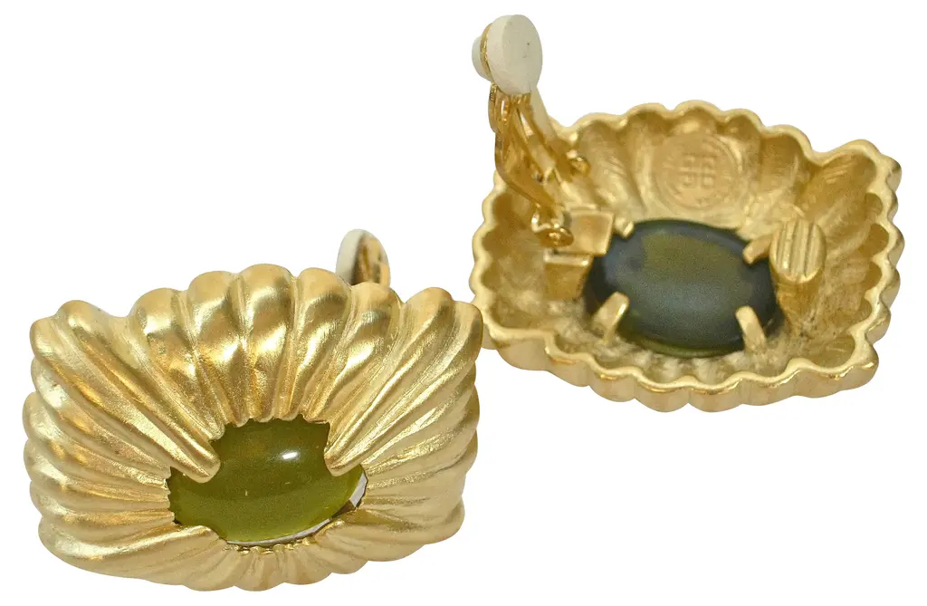 Givenchy carved gold-plated matte peridot glass clip back earrings. Signed "Givenchy, Paris, New York." From a private collection. Never worn.