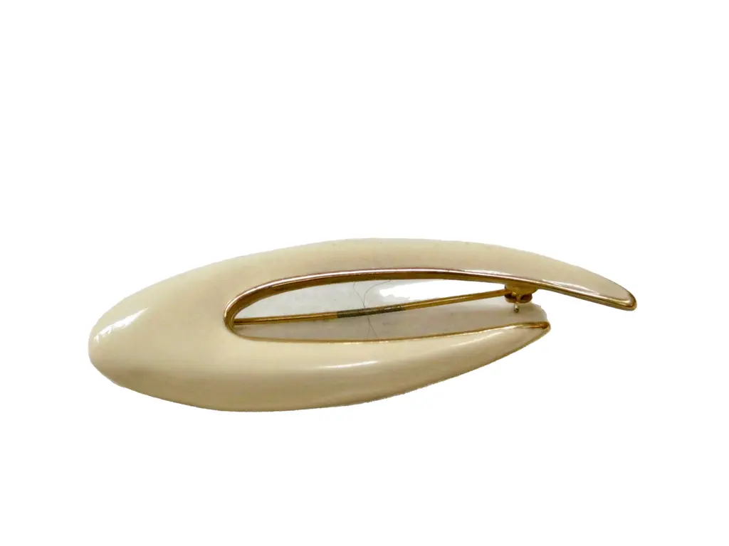 Givenchy cream enamel & gold roll-over clasp brooch/pin. Signed : 'Givenchy, Paris, New York". From a private collection, never worn.