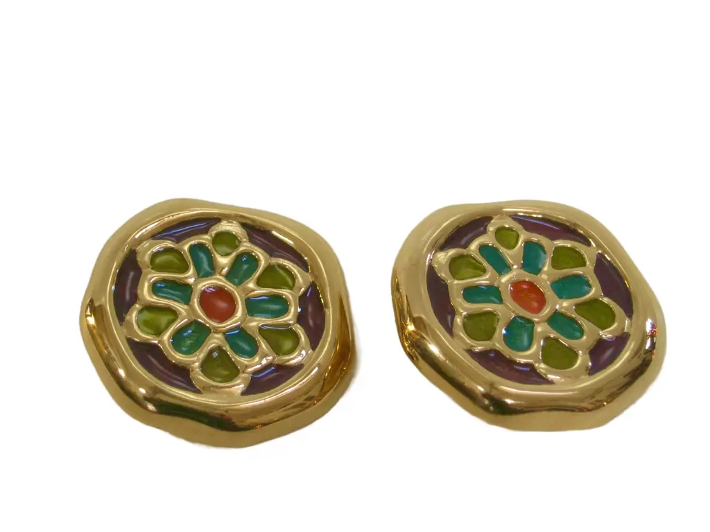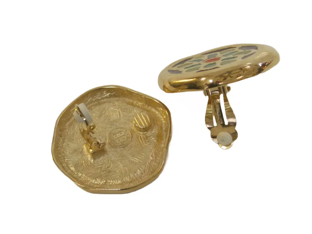 1980s Givenchy multicolored mosaic motif clip back earrings. Signed, "Givenchy, Paris, New York" From my private collection, never worn.