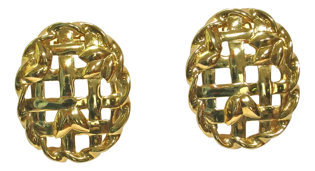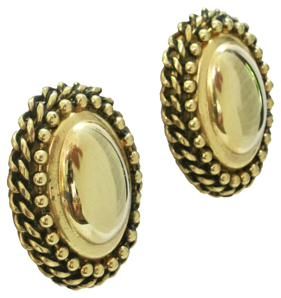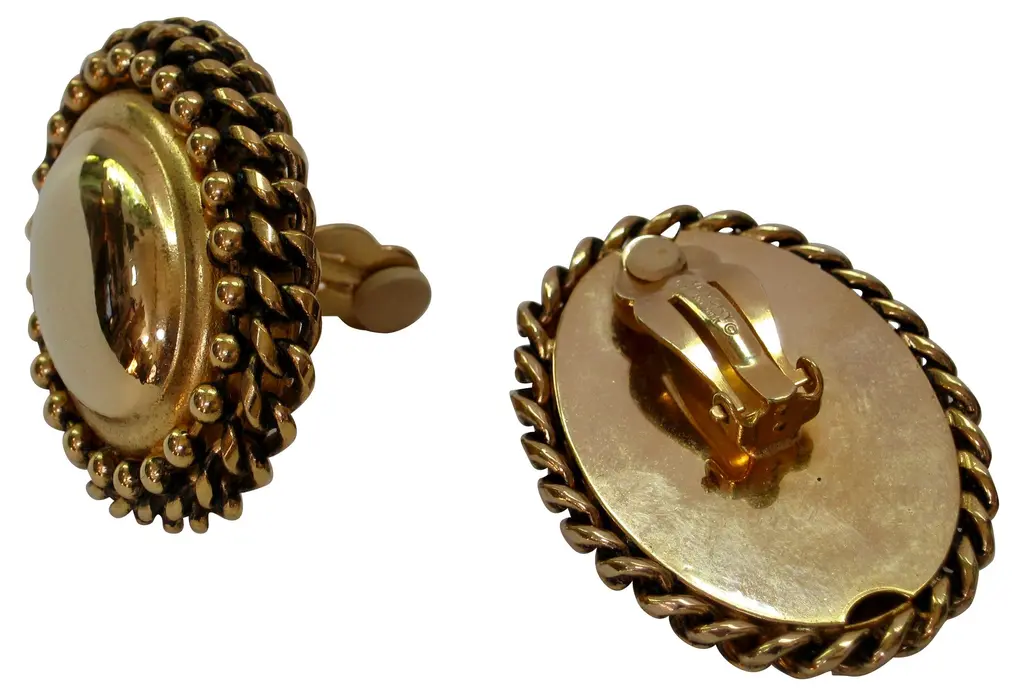 1980s Givenchy oval gold-plated clip-back earrings with cable trim. Signed "Givenchy, Paris, New York." From a private collection, never worn.