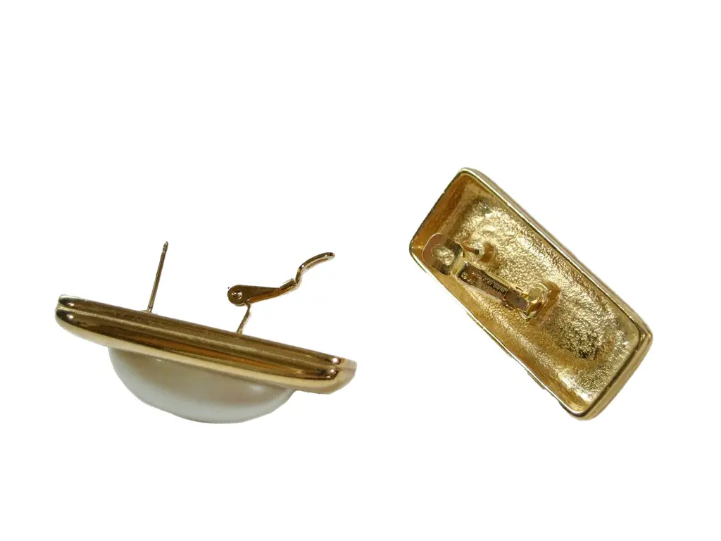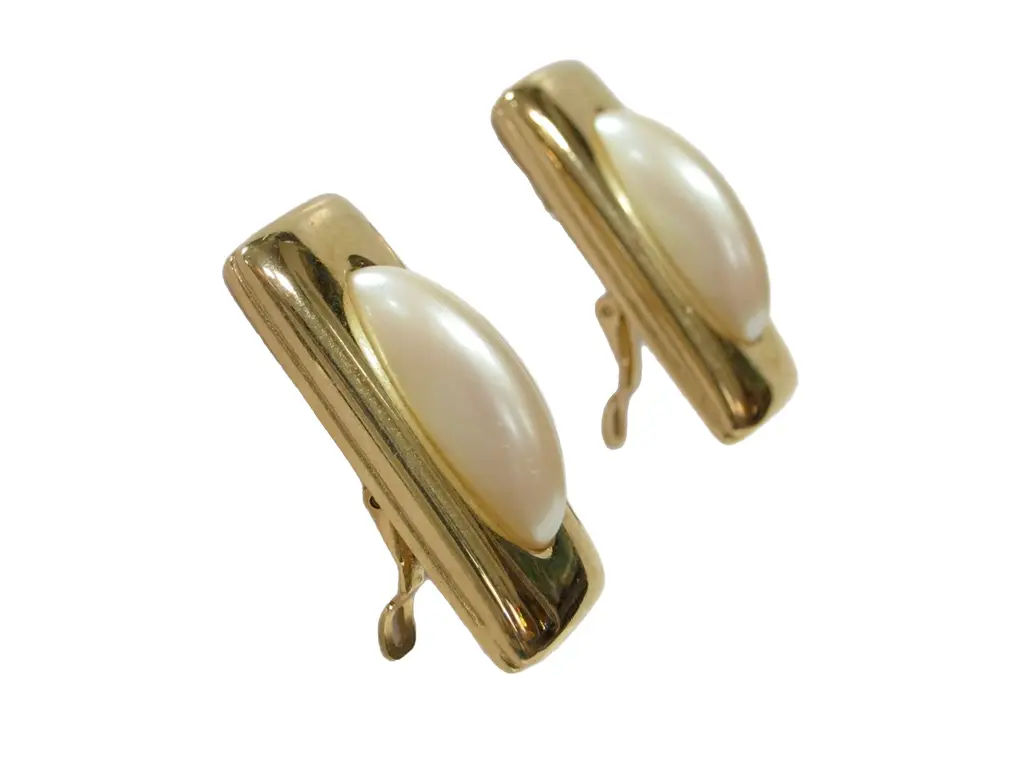 Givenchy polished gold-plated glass pearl French pierced post earrings, Signed: "Givenchy, Paris, New York" From my private collection, never worn.