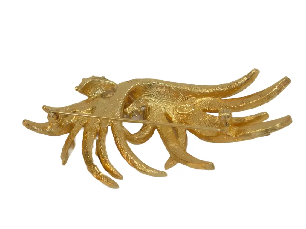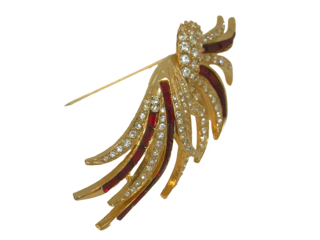 1980s Givenchy rare gold -plated clear crystal ruby red flame motif roll over clasp brooch Signed " Givenchy, Paris, New York" From my private collection, never worn.