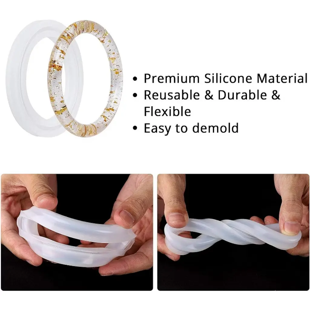 6 VARIETY STYLES - Features 6 styles silicone bracelet molds, including Round, Oval, C Font, you could easily create your own resin bracelet and decorations.PREMIUM QUALITY SILICONE MATERIAL - The casting resin molds are made of high-quality silicone material, flexible, thick, well resistant to tearing, hard to deform, washable, durable and reusable.EASY TO DEMOLD - Just twist the silicone resin molds and release your creation out of your bracelet molds after the resin is completely dry and cured. The easiest way to demold is to first peel from the edge slowly.SUITABLE FOR VARIOUS CASTING MATERIAL - These casting molds are compatible with most resins, or other casting materials such as uv resin, concrete, plaster, soap, wax, candle. You can add crafting materials, crystal, stone, glitter, dry flowers, sequins or any element you like.RESIN JEWELRY MOLD - - The resin epoxy casting mold can be used for making bracelet and diy other jewelry project, suitable for making unique gift for family, friends, colleagues and others.