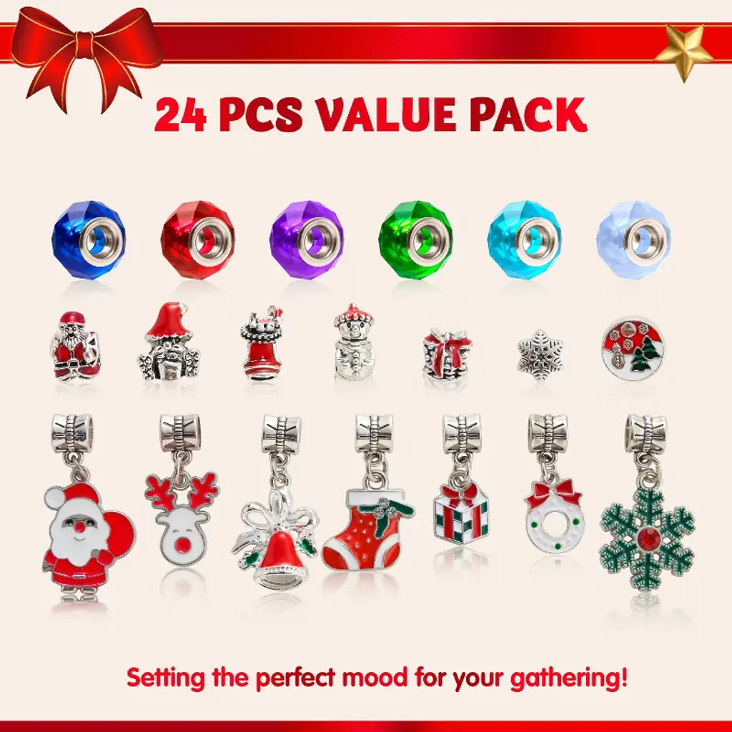 "Unwrap Creativity This Holiday Season!" This elegant Advent calendar combines the excitement of countdown with the joy of crafting: Daily Surprises: Each door reveals a new charm, bead, or accessory to add to your bracelet. Complete Kit: Includes elastic strings, clasps, and a variety of holiday-themed charms. Show Off Your Style: Mix and match designs to create bracelets that reflect your unique holiday spirit! Why It’s a Must-Have: ✅ Ideal for Gifting: Sleek packaging makes it perfect for teens, friends, or craft lovers. ✅ Reusable Components: Continue crafting long after Christmas with leftover beads. ✅ Holiday Tradition Starter: A fun, engaging way to build anticipation for Christmas Day. 🎁 Perfect For: Teens who love jewelry and DIY projects Mother-daughter bonding activities Holiday party favors or stocking stuffers Countdown celebrations with a creative twist