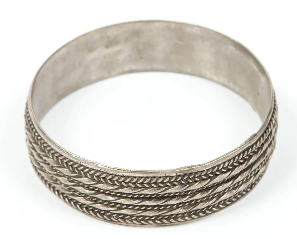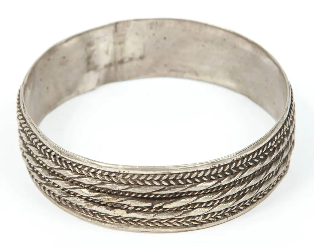 Moroccan Berber tribal bracelet. Moroccan tribal bracelets from the High Atlas of Morocco. Handcrafted by Berber women using Moroccan silver nickel. The ethnic Nomadic and Bedouin jewelry from the Maghreb and North Africa is usually made of nickel silver and the designs are full of symbolism to protect from the evil eye.Vintage Silver Moroccan Berber Saharan Ethnic Tribal African Granulated Ethnic Origin: African Features: Ethnic Regional & Tribal Metal: white metal not sterling silver. Jewelry Type: Bracelet Ethnic & Regional Style: African
