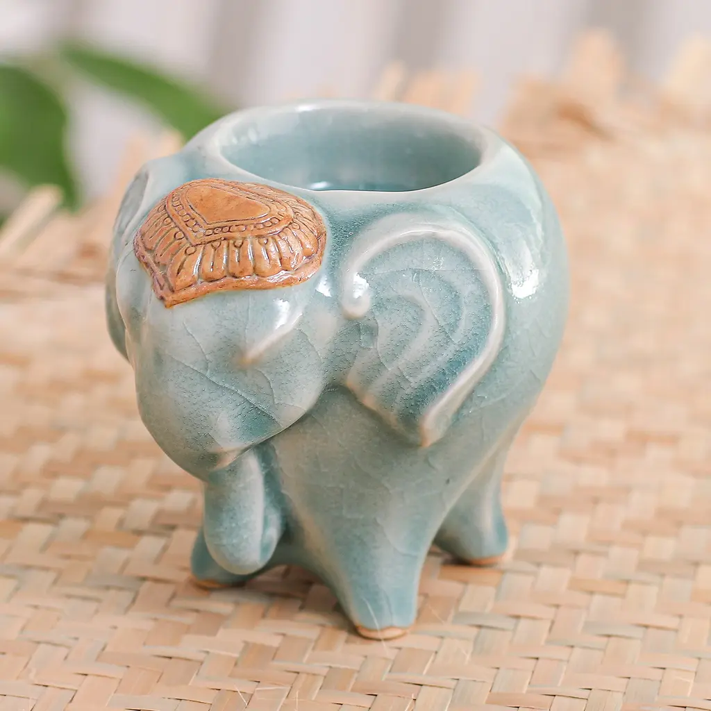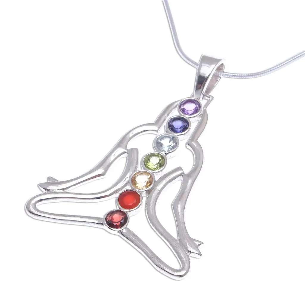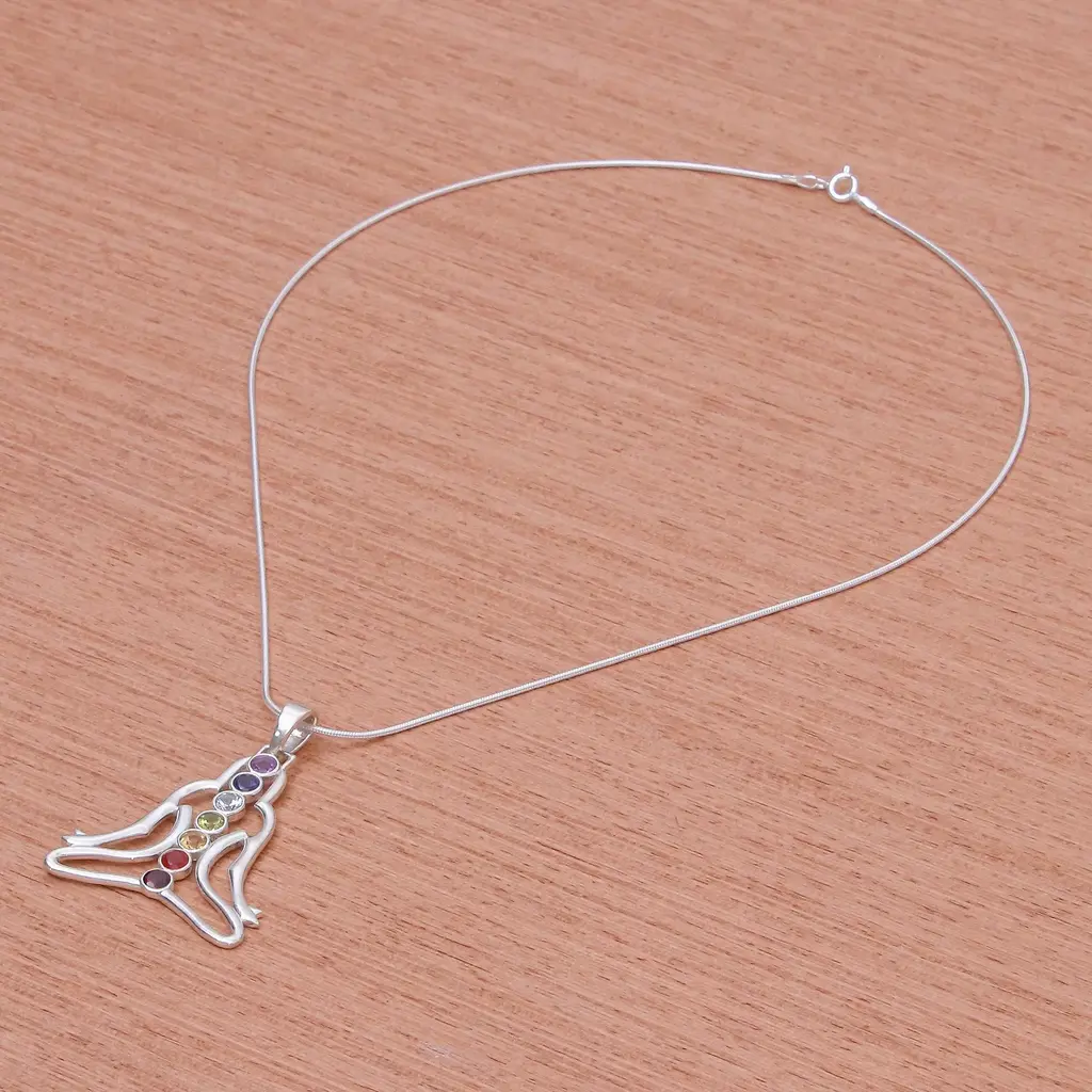 Inspire that special person in your life with a present that brings serenity and relaxation. The NOVICA team picks fabulous items crafted in Thailand for a unique gift set designed to boost tranquility and peacefulness. Gleaming sterling silver outlines a person seated in meditation pose in an awe-inspiring pendant necklace with amethyst, iolite, blue topaz, peridot, citrine, carnelian and garnet gemstones, representing the seven chakras. Soothe your senses with the sweet aroma of a tealight beautifully set on top of a celadon ceramic elephant candle holder, boasting hand-painted accents and a soft green crackled glaze. And arrive at the yoga studio in style using a handy and stunning cotton mat bag showcasing a gorgeous Thai floral print, a dark brown cotton lining, an interior zippered pocket, brass fixtures and a convenient adjustable strap.