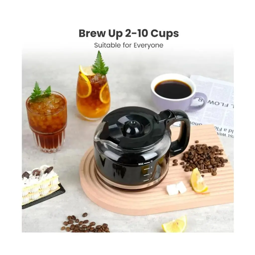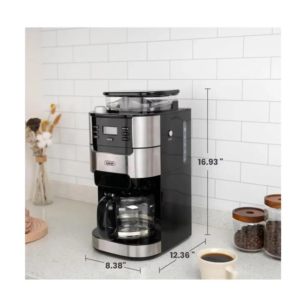 10-cup Drip Coffee Maker With Built-in Grinder, Programmable Brew Coffee Machine With Timer