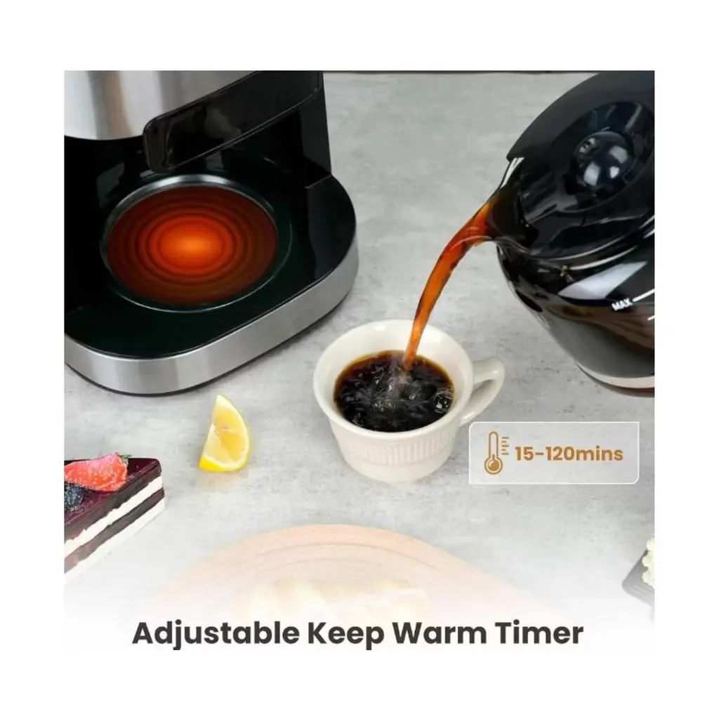 ๐-๐๐ ๐๐ฎ๐ฉ ๐๐๐ฉ๐๐๐ข๐ญ๐ฒ - Drip coffee maker with built-in grinder allows you to brew 10 cups, or use the programming button "POWDER 2-10" 2 cups to adjust to 10 cups to balance the coffee with water. ๐๐ซ๐-๐๐ซ๐๐ฐ ๐๐๐๐ก๐ง๐จ๐ฅ๐จ๐ ๐ฒ - This black and silver coffee machine uses specialized pre-brew technology to meticulously hydrate the coffee grounds through precise temperature control before brewing. ๐๐ฎ๐ฅ๐ญ๐ข๐ฉ๐ฅ๐ ๐๐ซ๐๐ฐ ๐๐๐ญ๐ญ๐ข๐ง๐ ๐ฌ - This coffee maker with built-in burr grinder allows you to customize coffee strength and grind with 3 levels and 8 settings. Grind whole coffee beans before brewing to create fresh, delicious coffee. ๐๐๐๐ฉ ๐๐๐ซ๐ฆ ๐ ๐ฎ๐ง๐๐ญ๐ข๐จ๐ง - After the coffee is made, the machine will keep warm for 2 hours, or you can set the keep warm time to 0/15/35/45/60/75/90/100/120 minutes. ๐๐๐ฎ๐ฌ๐๐๐ฅ๐ ๐ ๐ข๐ฅ๐ญ๐๐ซ - This coffee machine with grinder comes with a reusable filter. The filter can be rinsed clean with water.