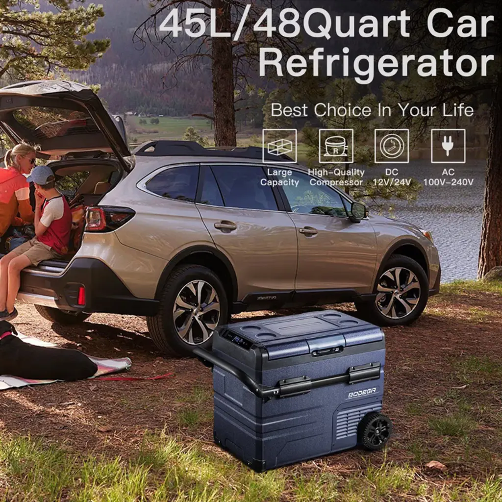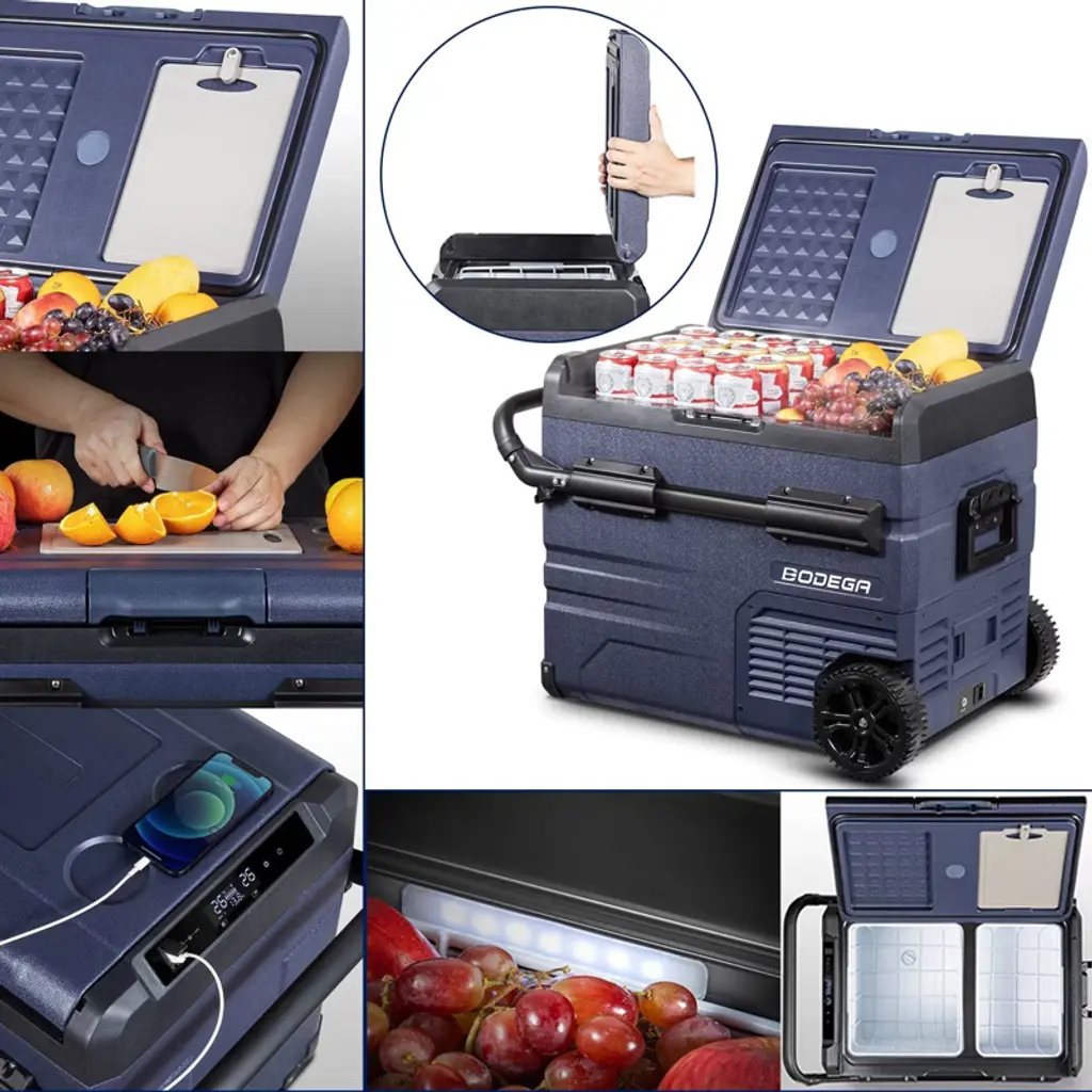 12v Car Refrigerator, Portable Freezer Dual Zone App Control, 48 Quart (45l)-4°f-68°f, 12/24v Dc And 100-240v Ac,led Light,convenient Cutting Board