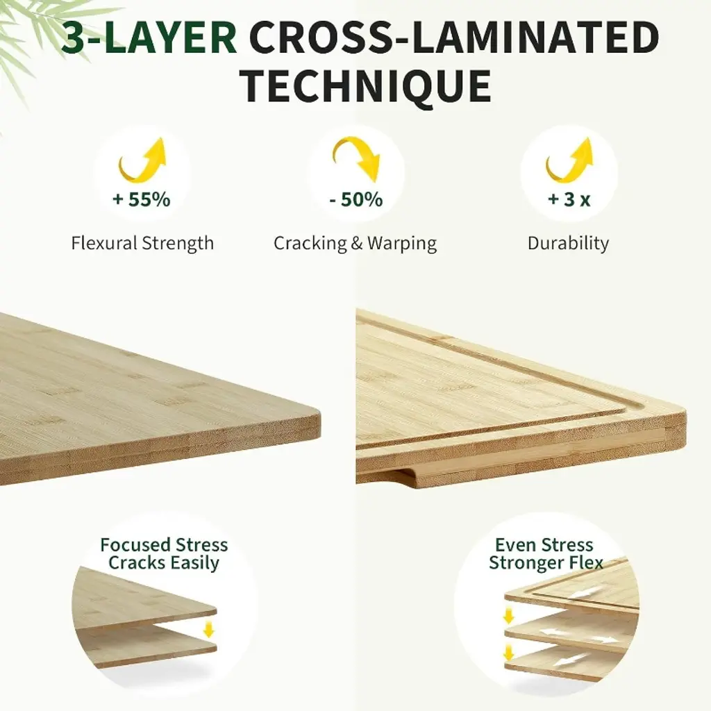 24x18 Inch Bamboo Cutting Board, Deep Juice Groove, Built-in Handles, Pre-oiled Butcher Block For Meat, Vegetables, Fruit, Easy To Clean