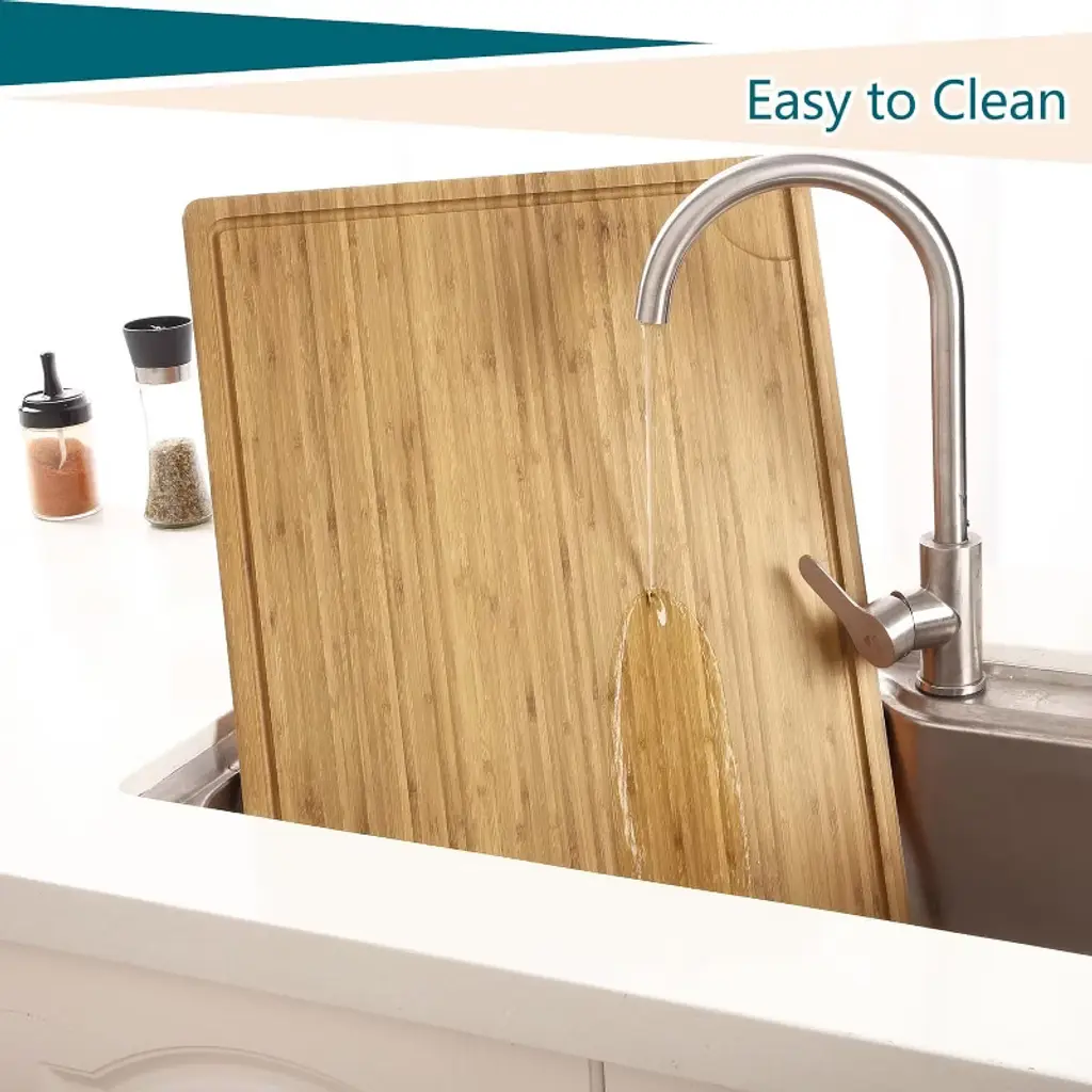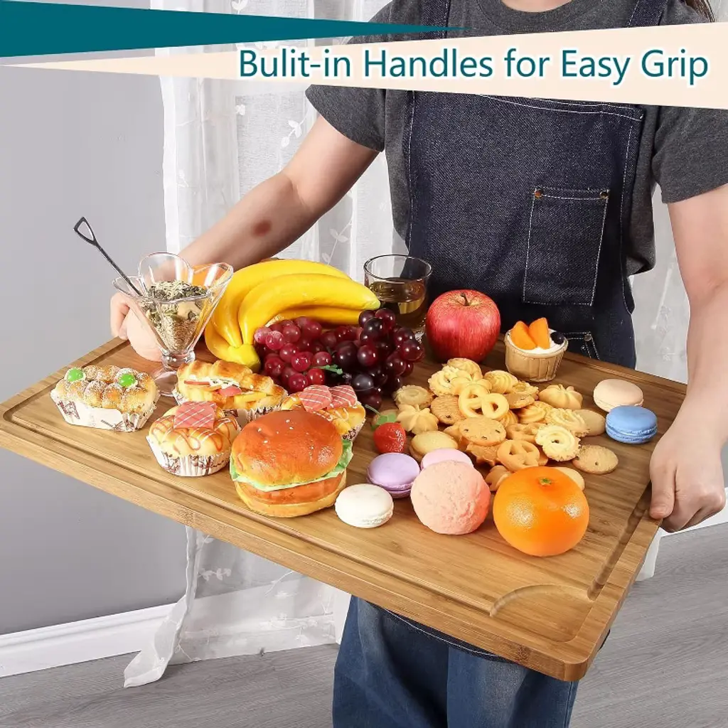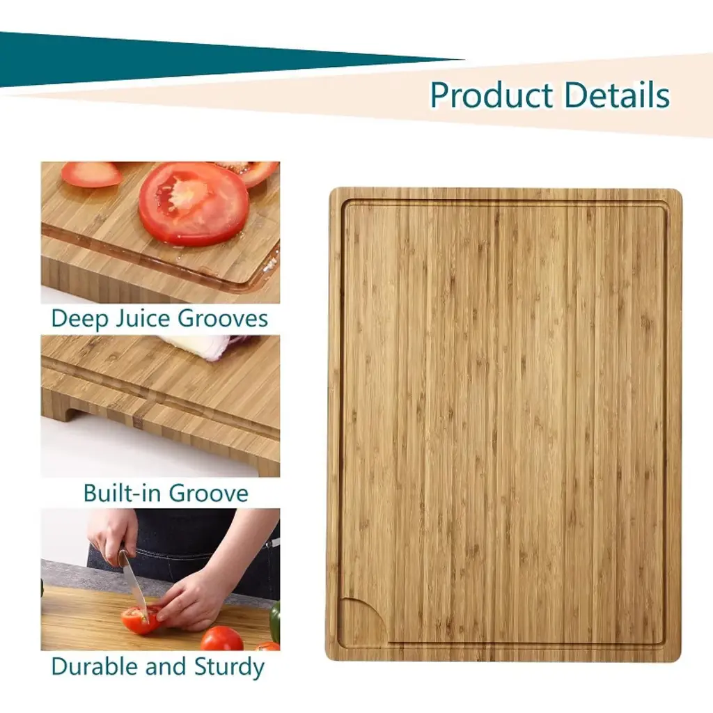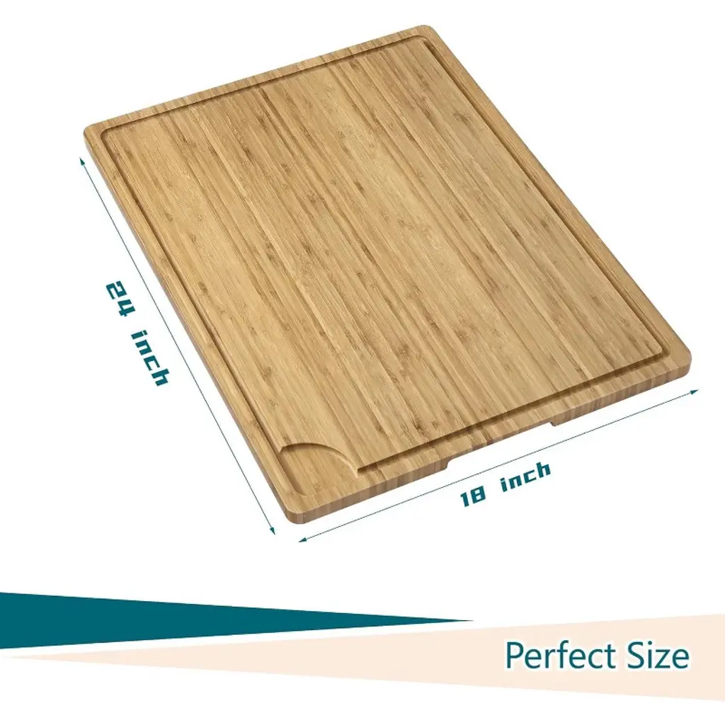 Upgrade your culinary experience with our large bamboo cutting board, designed for serious home chefs and meal prep enthusiasts. Crafted from high-density bamboo, this heavy-duty chopping block delivers a sturdy, knife-friendly surface that resists scratches, stains - perfect for daily use with meats, vegetables, fruits, and more..24x18 Inch Extra Large Bamboo Cutting Board, Reversible Chopping Board with Deep Juice Groove and Handles, Pre-oiled Butcher Block Cutting Board.24x18 Inch Extra Large Bamboo Cutting Board, Reversible Chopping Board with Deep Juice Groove and Handles, Pre-oiled Butcher Block Cutting Board