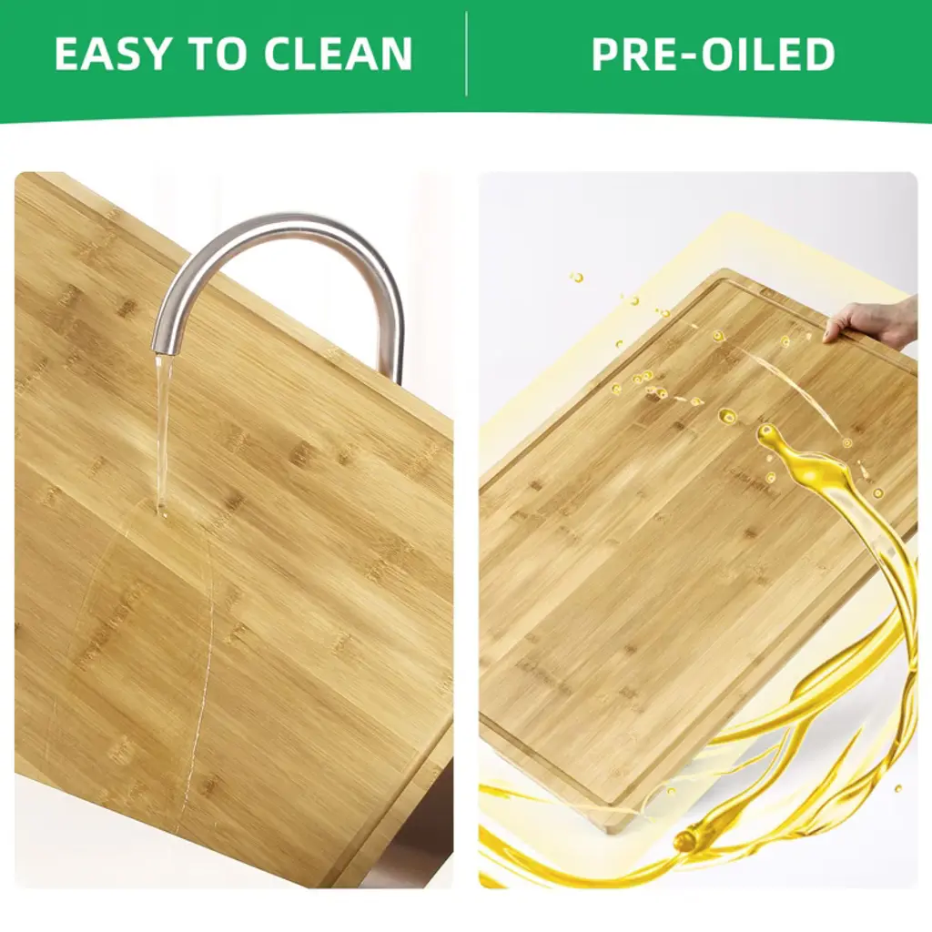 Upgrade your culinary experience with our large bamboo cutting board, designed for serious home chefs and meal prep enthusiasts. Crafted from high-density bamboo, this heavy-duty chopping block delivers a sturdy, knife-friendly surface that resists scratches, stains - perfect for daily use with meats, vegetables, fruits, and more..30 x 20 Inch Extra Large Bamboo Cutting Board, Reversible Chopping Board with Deep Juice Groove and Handles, Pre-oiled Butcher Block Cutting Board.30 x 20 Inch Extra Large Bamboo Cutting Board, Reversible Chopping Board with Deep Juice Groove and Handles, Pre-oiled Butcher Block Cutting Board