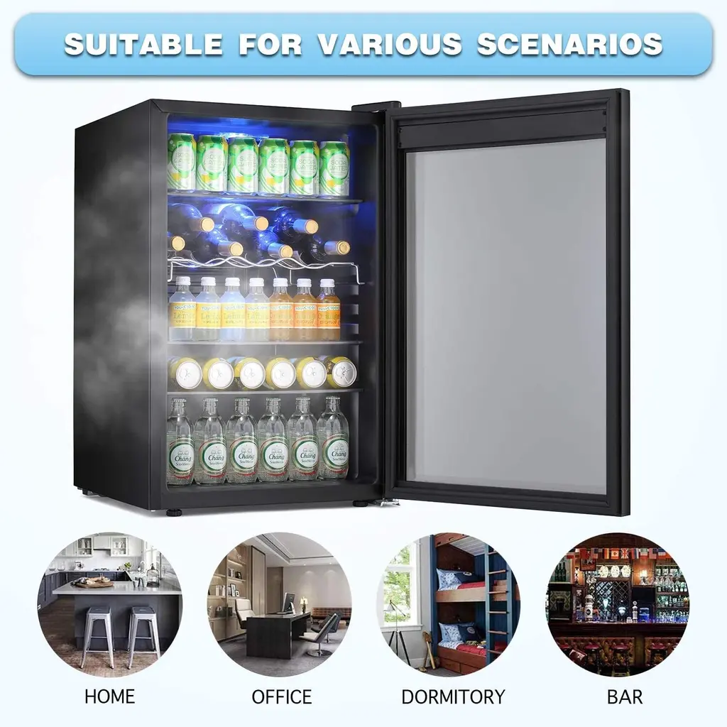 4.4cu.f Wine Cooler With Led Lights And Touch Buttons, Removable Shelves, Less Than 38db - Black-New