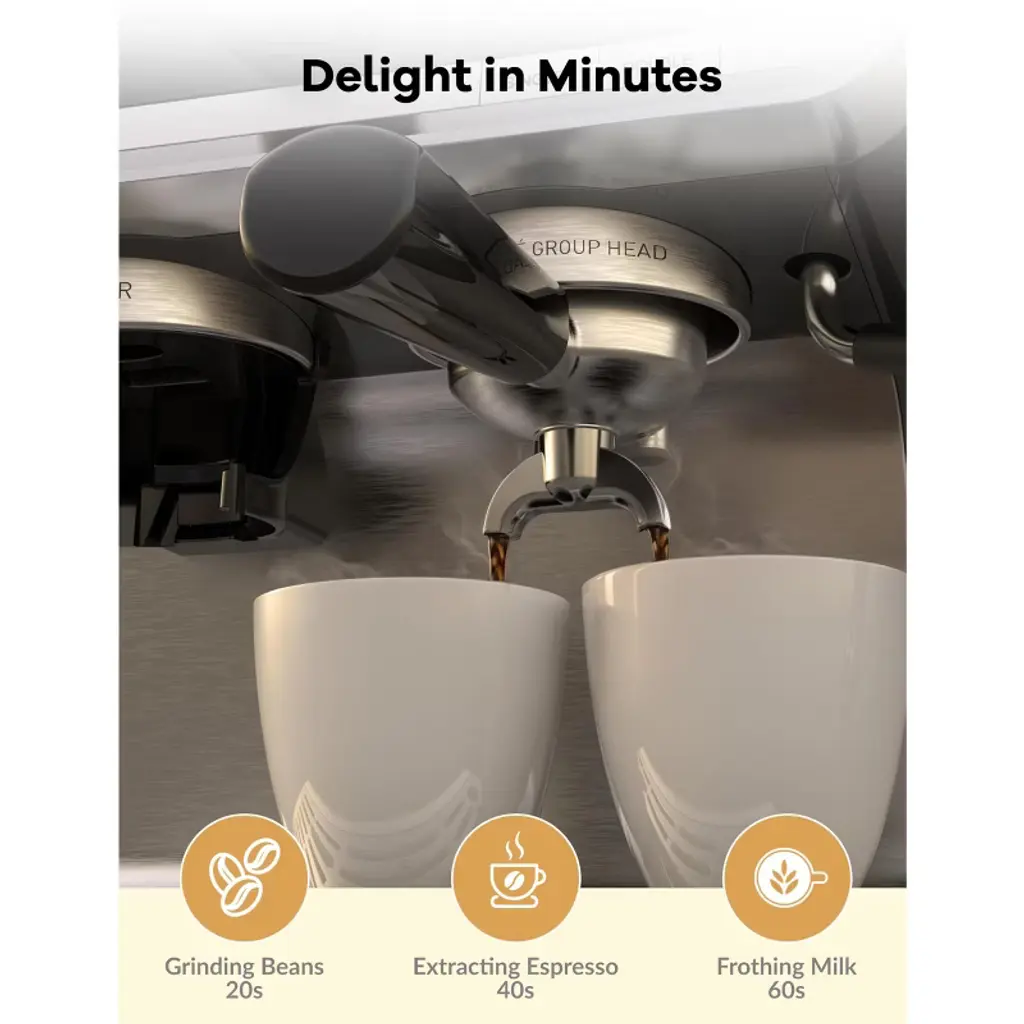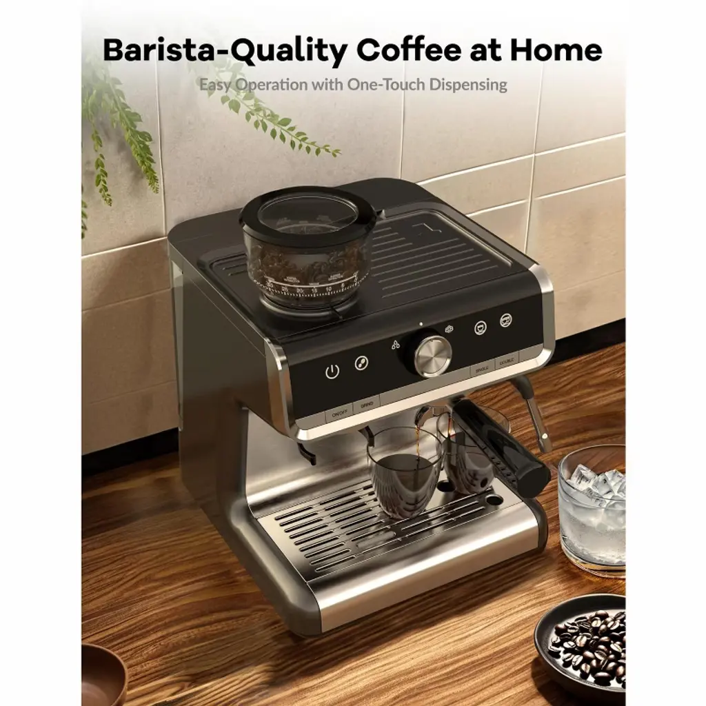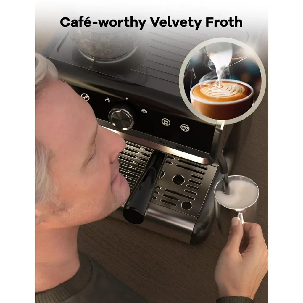 Acekool 20 Bar Semi-automatic Espresso Machine Coffee Maker With Built-in Grinder & Milk Steamer,dark Gray