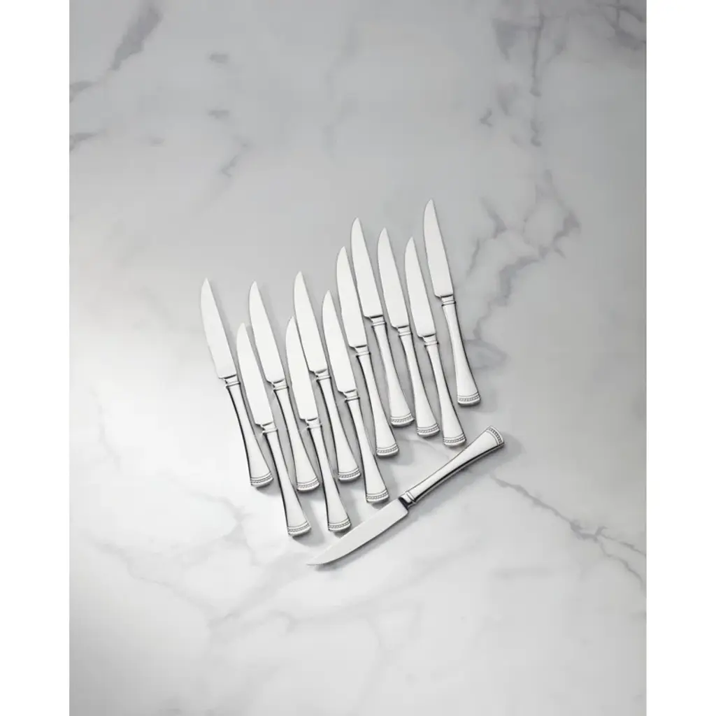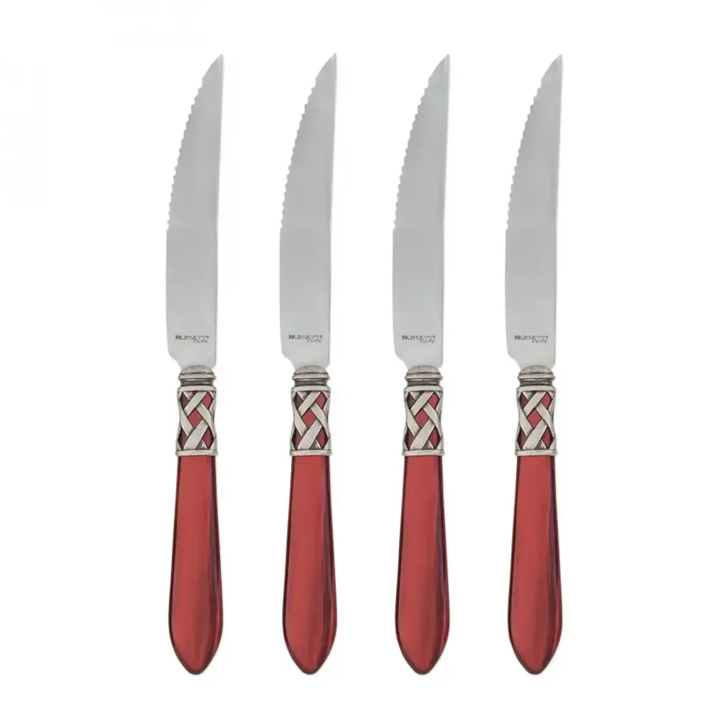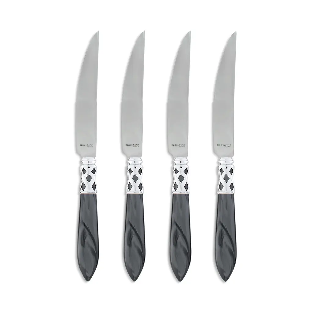 The Albero Steak Knives - Set of 4 features warm wood handles, with the strength of high-grade polyester and 18/10 stainless steel. Since 1983, Vietri has specialized exclusively in Italian handcrafted ceramics, stainless and pewter flatware, mouth blown glassware, lamps, urns and planters. Families of artisans with 3 or 4 generations of history create these special pieces using centuries-old techniques. The subtle color from a paintbrush and the curving stroke of the artist's hand are never repeated in quite the same way, making each piece truly unique.