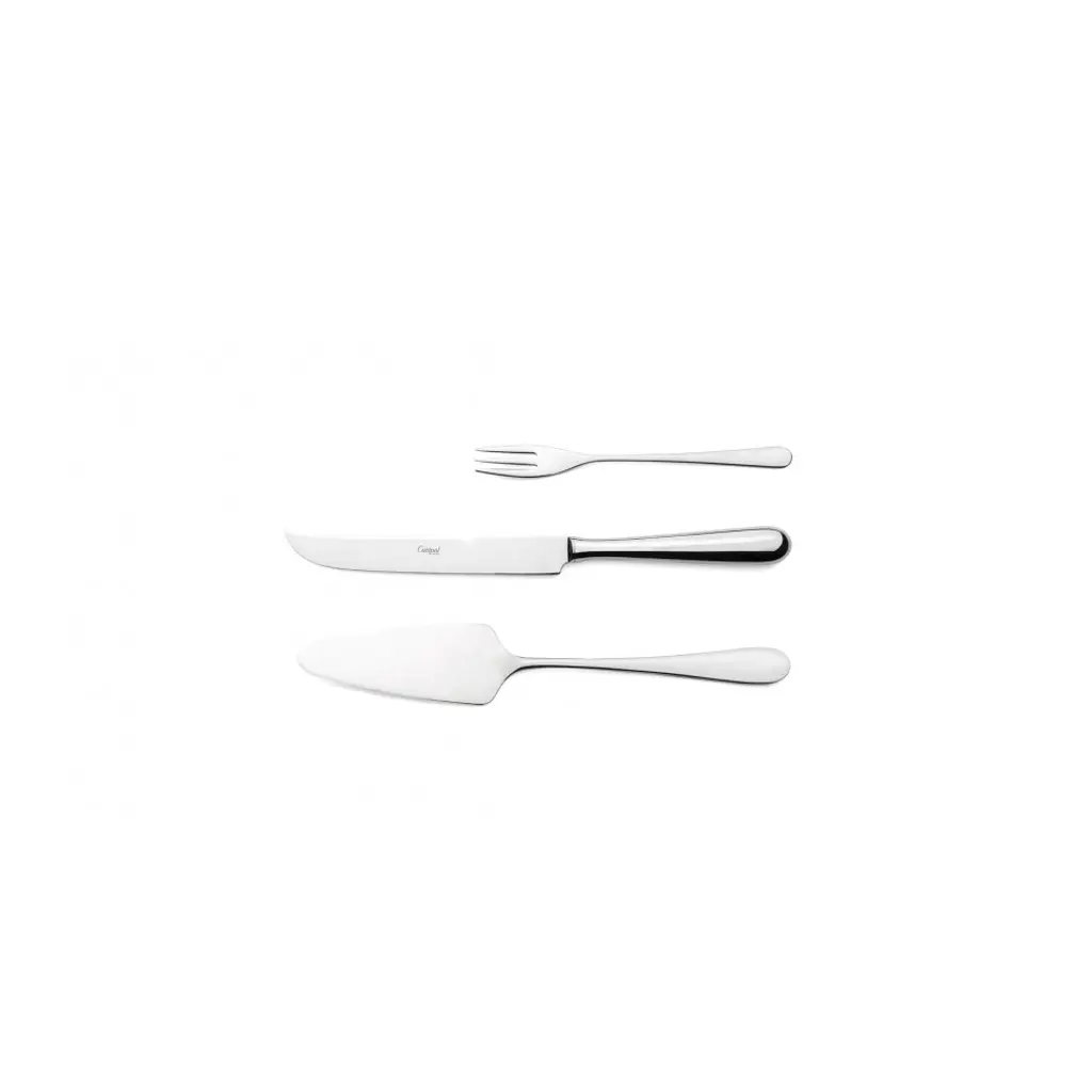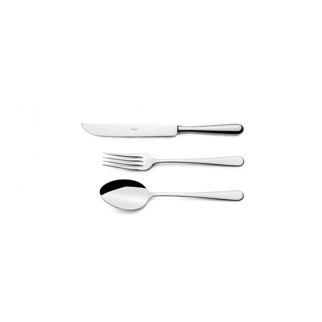 Alcantara Steel Polished 130 Pc Set Special Order (12x: Dinner Knives, Dinner Forks, Table Spoons, Coffee/tea Spoons, Mocha Spoons, Dessert Knives, Dessert Forks, Dessert Spoons, Fish Knives, Fish Forks; 1X: Soup Ladle, Serving Knife, Serving Fork, Serving Spoon, Sauce Ladle, Cheese Knife, Sugar Ladle, Pie Server, Salad Serving Set)