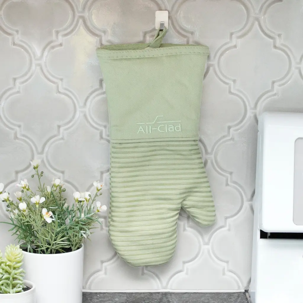 A handy essential for any kitchen, this set of two All-CladⓇ Silicone Oven Mitts dependably keeps the heat off of you. Masterfully constructed with 100% heavyweight cotton twill, these durable oven mitts are silicone-treated on both sides to ensure both right- and left-handed users enjoy heat protection up to 500℉ (260℃). All-CladⓇ Silicone Oven Mitts offer plenty of flexibility, conforming to the shape of hot cookware, which means you can handle hot dishes with confidence. Choose from a variety of charming colors that fit your personal palette. Machine washable for hassle-free cleaning.