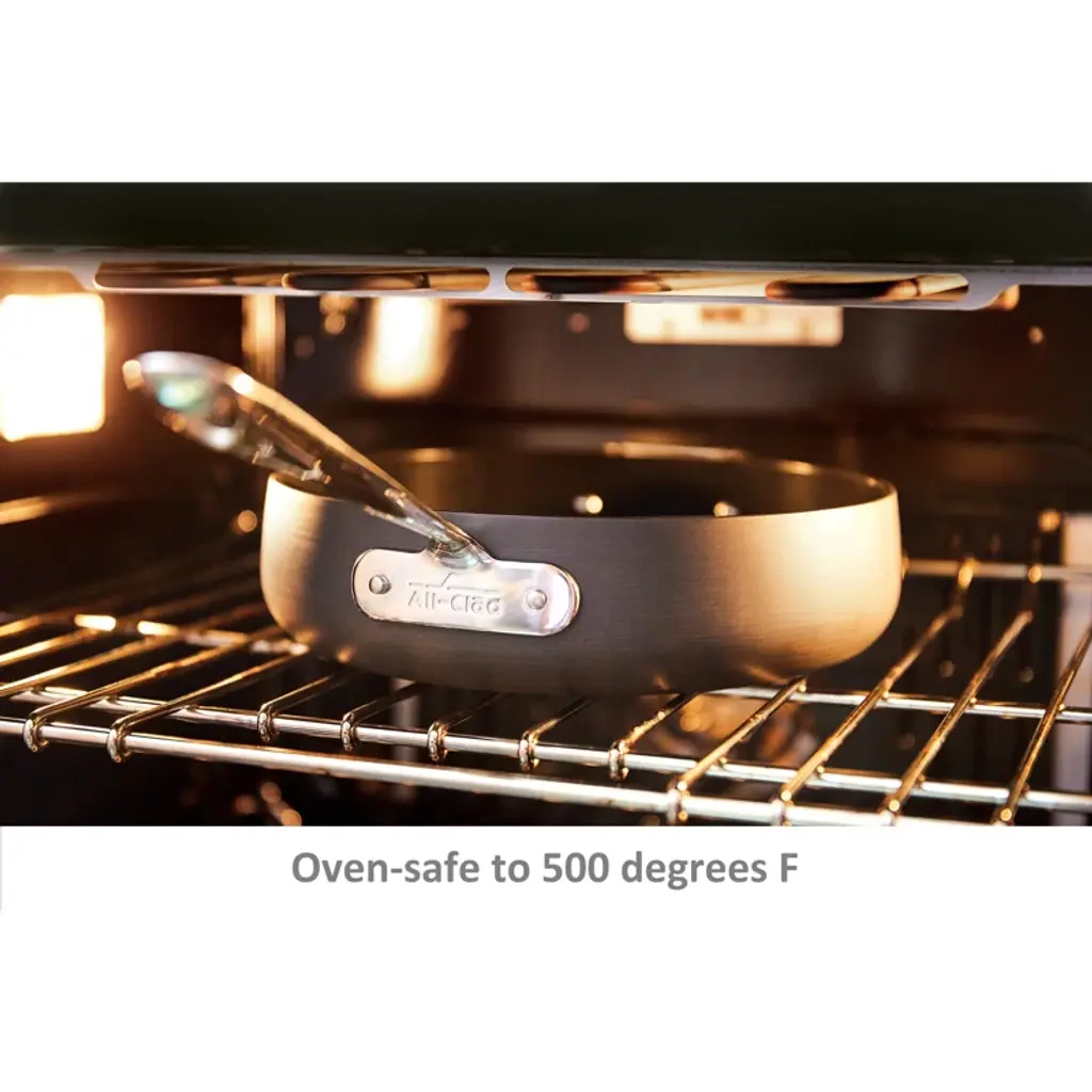 Deeper than a traditional fry pan, the product features a large surface area and tall, straight sides that hold in juices, prevent splattering, and allow for easy turning with a spatula. Ideal for a wide range of foods including chicken breasts and fish fillets. This sauté pan offers the convenience of browning or searing, then deglazing or finishing in liquid; all in one pan. The lid locks in moisture and heat to thoroughly finish meats on the stovetop or in the oven. With saucepan cookware, you can experience the renowned quality of All-Clad and the ultimate convenience of nonstick. The All-Clad cookware’s three layers of PFOA-free nonstick coating ensure effortless food release and make cleanup a breeze. Even more, Hard Anodized nonstick cookware offers dishwasher-safe convenience, induction compatibility, and warp-resistant strength. Discover what it means to cook with All-Clad.
