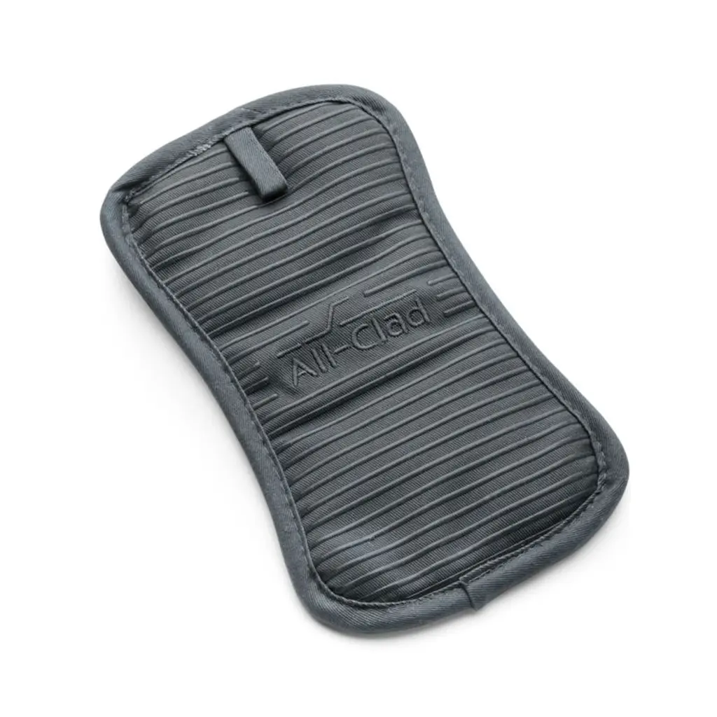 Embroidered stripes and a silicone finish provide a sturdy grip on hot pots, pans and plates. Protect your hands as you cook and bake with this cotton pot holder in deep pewter grey, detailed with a handy hanging hook. For coordinated cooking, pair with the matching oven mitt.All-Clad has been crafting cookware since 1971.