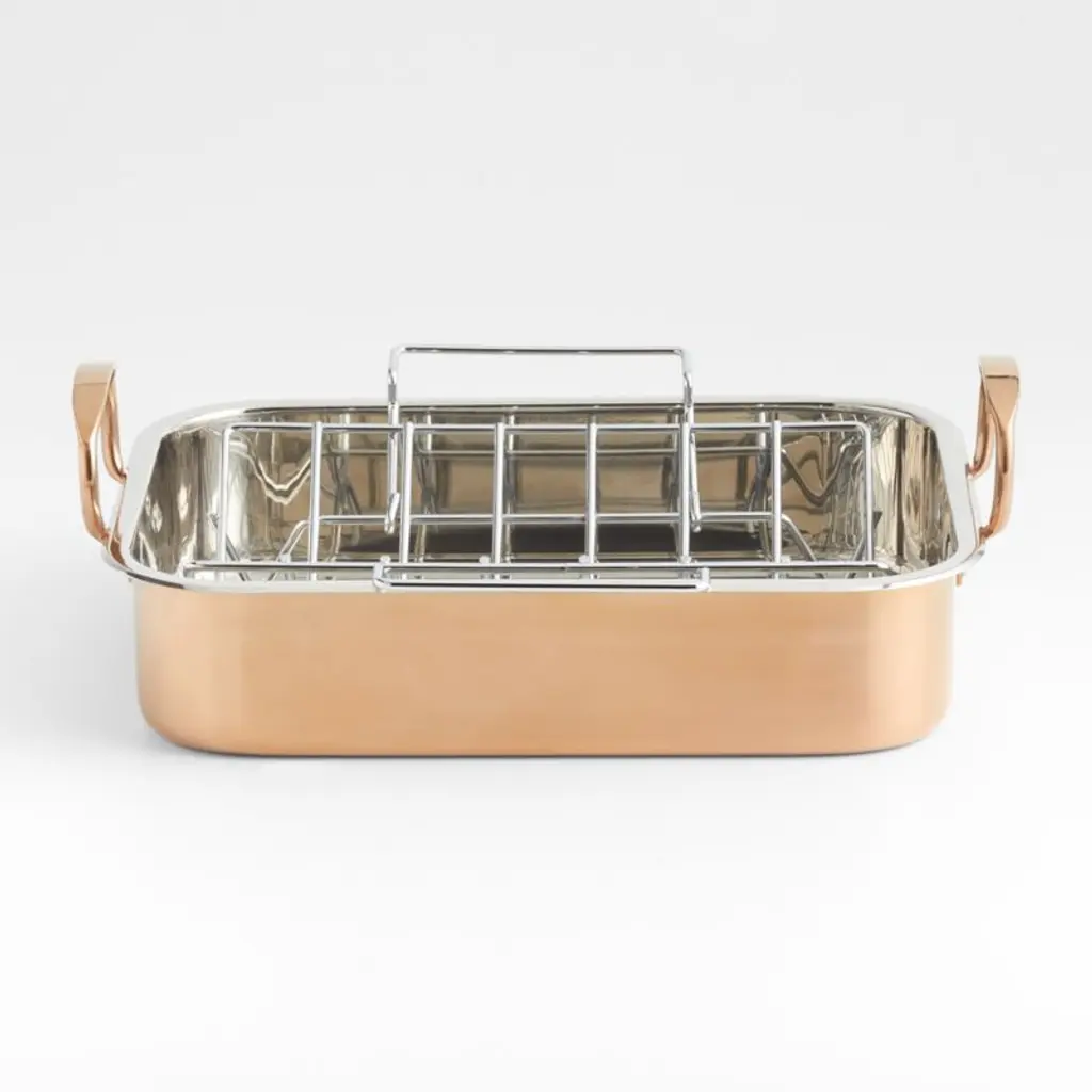 Elevate your home-cooked meals with this oval stainless steel roasting pan. It's designed to be versatile and safe for use on electric coil, gas, electric plate, and induction stovetops. The pan comes with a handy rack and lid, making it perfect for roasting your favorite meats and vegetables. Plus, it's PTFE and PFOA free, ensuring a healthier cooking experience. While dishwasher safe, we recommend hand washing to keep it looking its best. Ideal for residential use, this pan is a must-have addition to your kitchen collection.