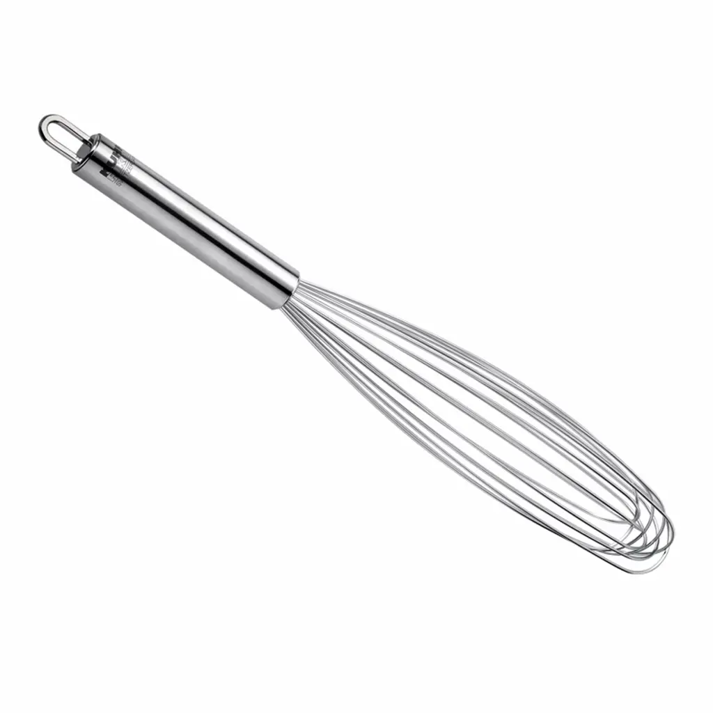 An essential cook's tool, this whisk is made of durable 18/10 stainless steel, polished to a beautiful finish. The classic handle allows for a sturdy grip when beating eggs or preparing dressings and sauces.