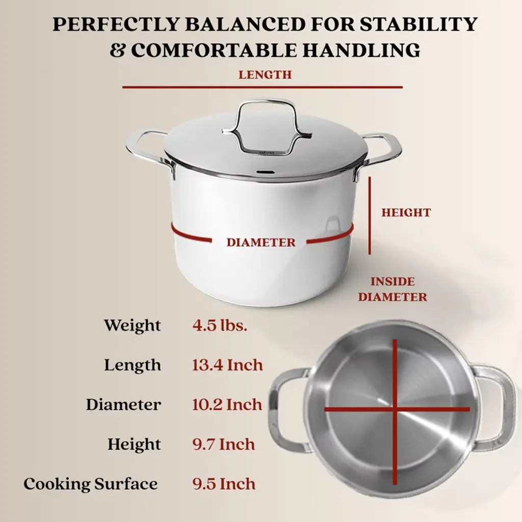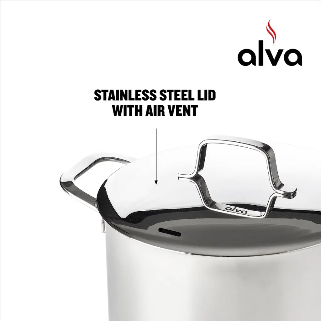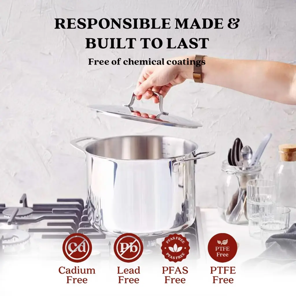 Alva Maestro 8 Qt. Stainless Steel Stock Pot With Lid Scratch Resistant Non-toxic Pfas Free Compatible With All Stovetops Oven Safe & Induction Safe