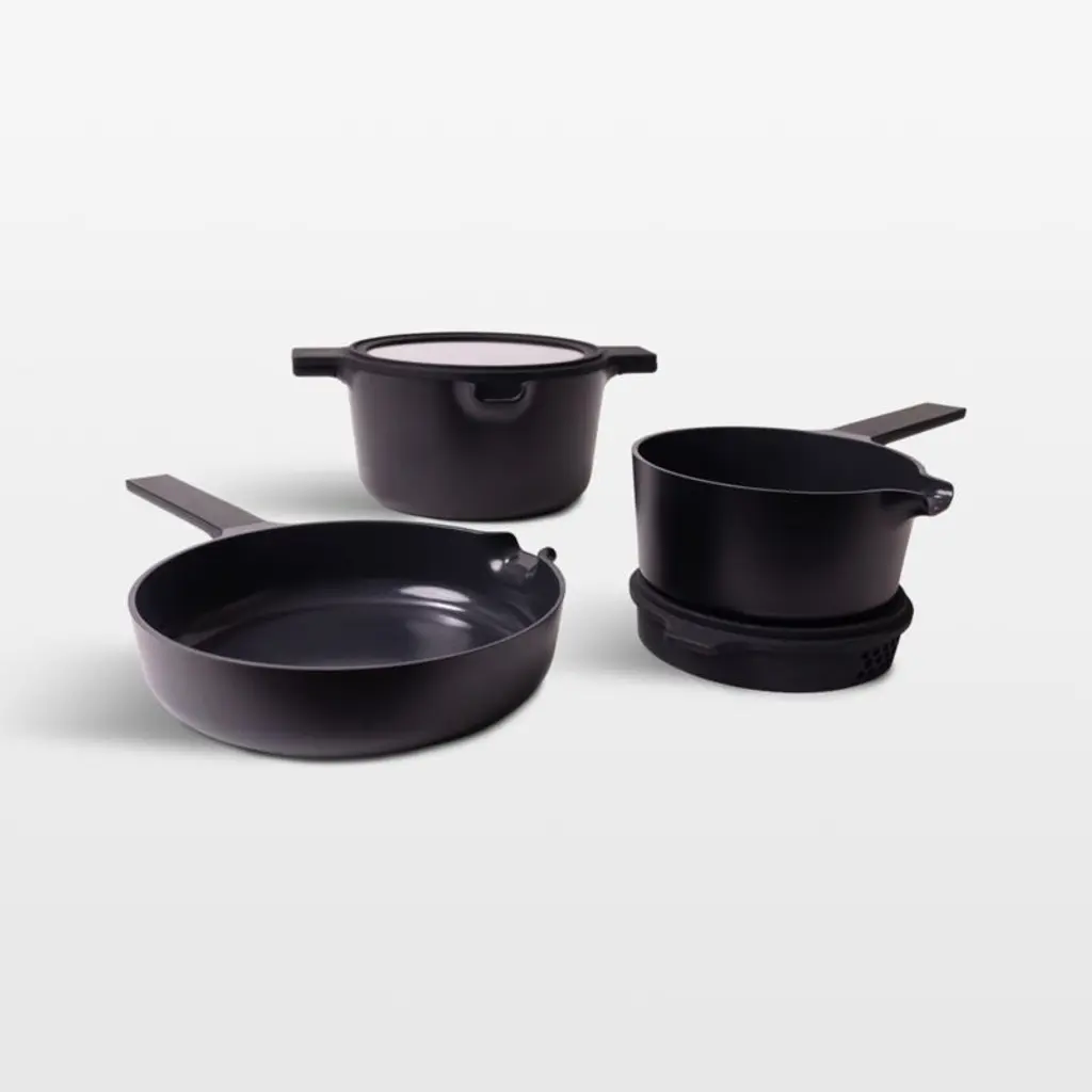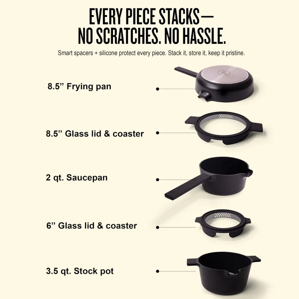 Alva Neat Nested Nonstick Ceramic Cookware Set 5-piece Set Black - Easy To Clean, Oven Safe And Toxin-free Cookware