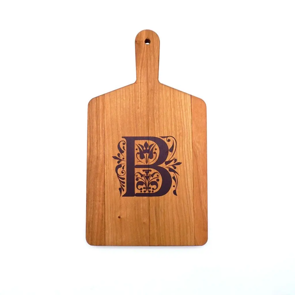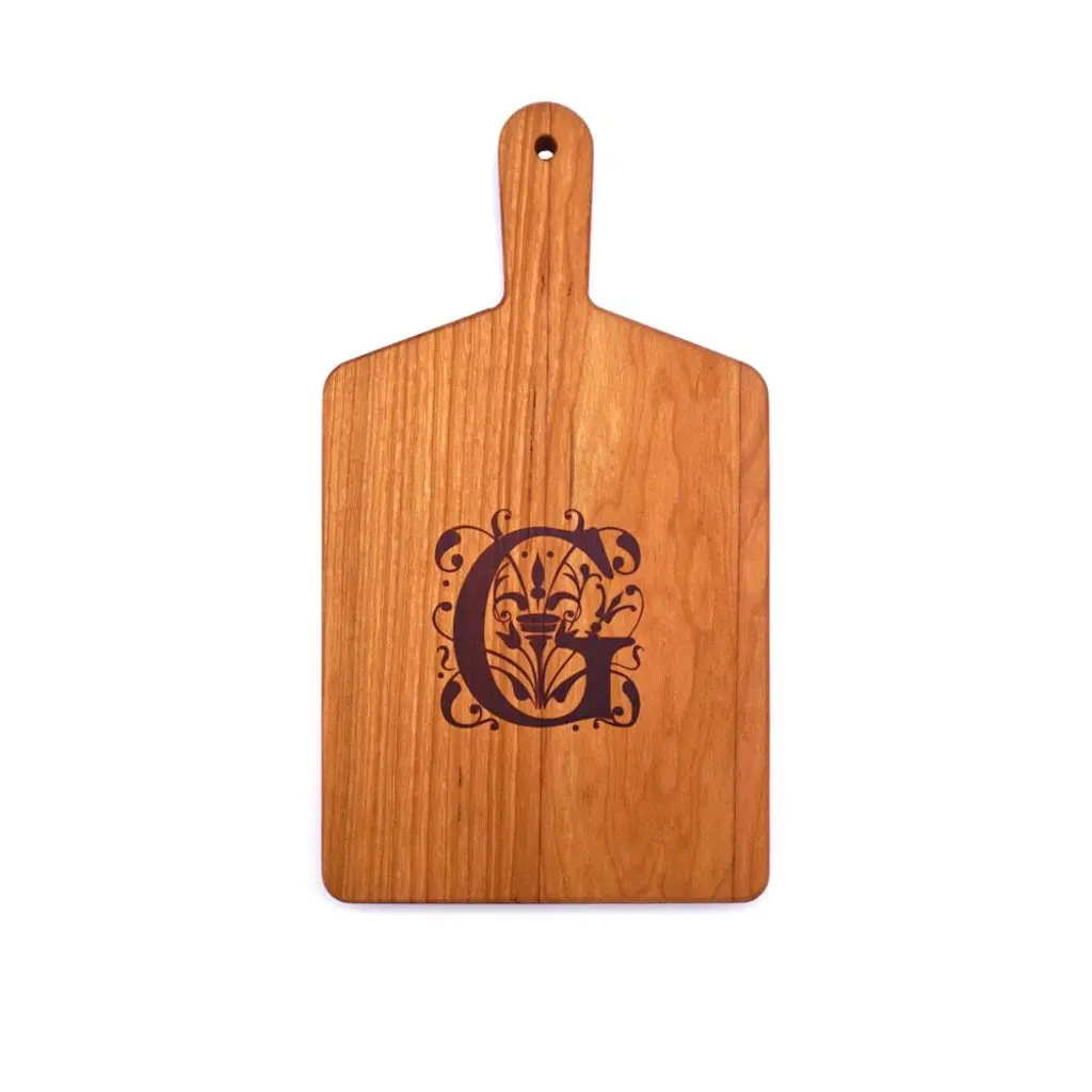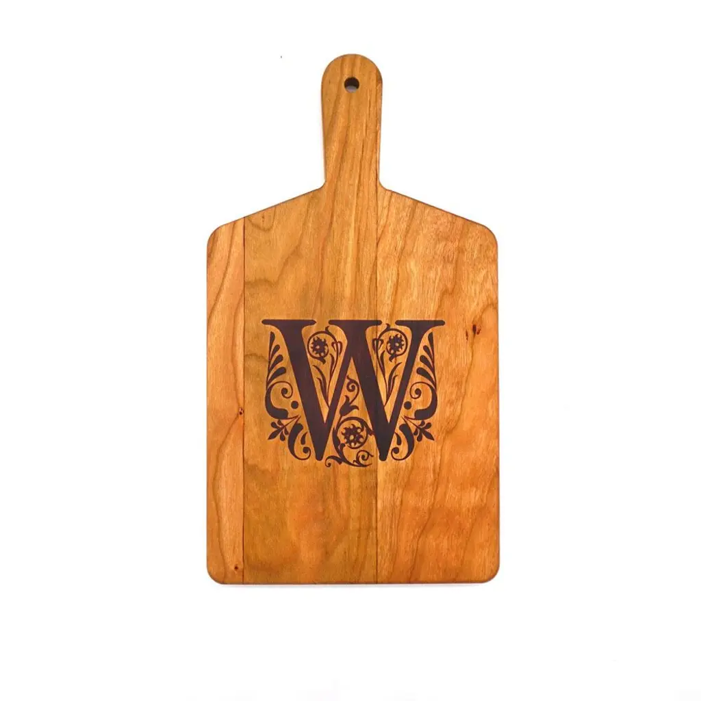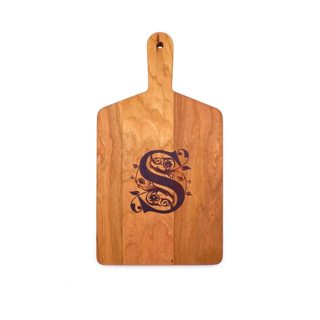 American Made Solid Cherry Wood Monogrammed "A" Cheese Board