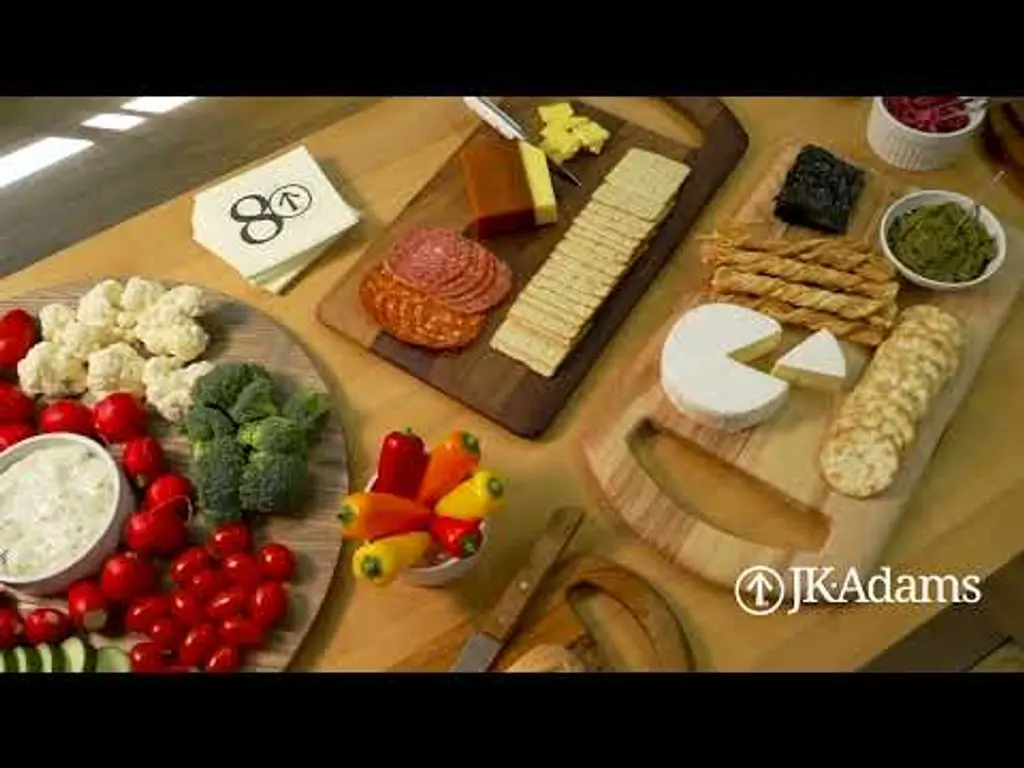 American Made Solid Cherry Wood Monogrammed "K" Cheese Board. Our Monogrammed Cherry Cheese board makes a great gift for a thank you, hosts, birthdays, bridal showers and gifts for the bridal party. Each board is monogrammed with an intricate letter. Features mineral oil & beeswax finish. This board has a lifetime guarantee, but please be sure to take good care: Wash gently with warm, soapy water after each use. Do not soak your board in water or put it in the dishwasher. Towel dry your board after washing, and allow it to air dry thoroughly. Condition your board regularly with JK Adams Mineral Oil or Beeswax Wood Conditioner. Do not use your board in the microwave. Lifetime Guarantee. No questions asked. Our products come to you with a 100% satisfaction guarantee. If you ever have any problems with a JK Adams product, we will replace it. Fully assembled. No particle board. Made in the USA. Manufacturer: JK Adams.